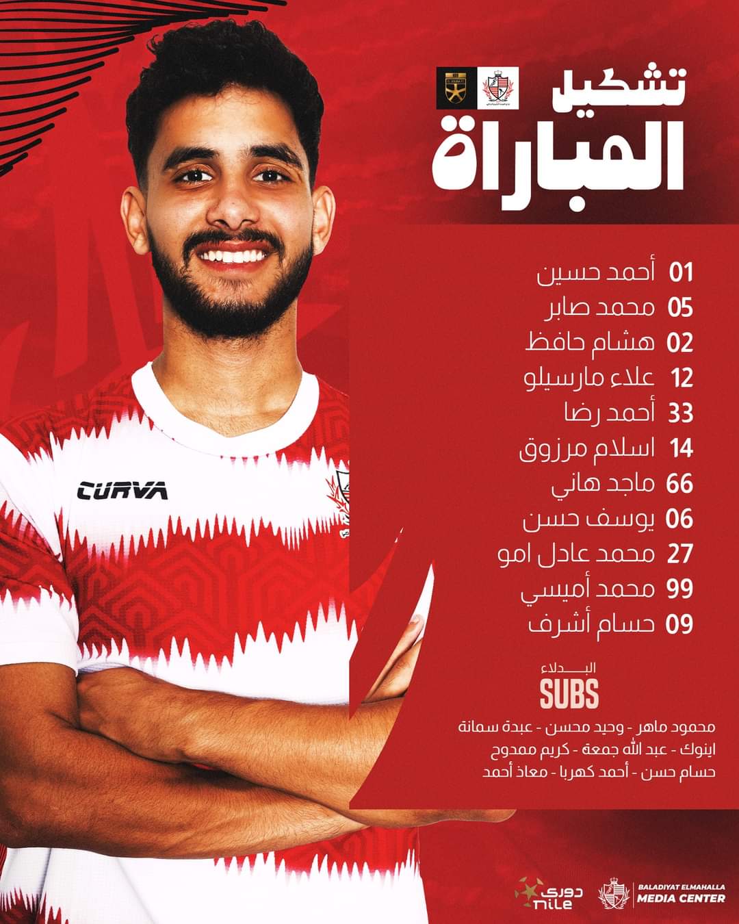 محمود ماهر - وحيد محسن- عبدالله جمعه - عبد الرحمن سمانة -كريم ممدوح - حسام حسمدن - احمد كهربا- معاذ أحمد - اينوك