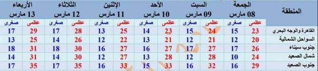 كما حذرت الأرصاد الجوية، من بدء ارتفاع درجات الحرارة بصورة تدريجية على كافة الأنحاء بدءًا من يوم حيث يسود طقس حار خلال النهار بينما تتحول تلك الأحوال الجوية إلى مائلة للبرودة أثناء الليل على أغلب الأنحاء.