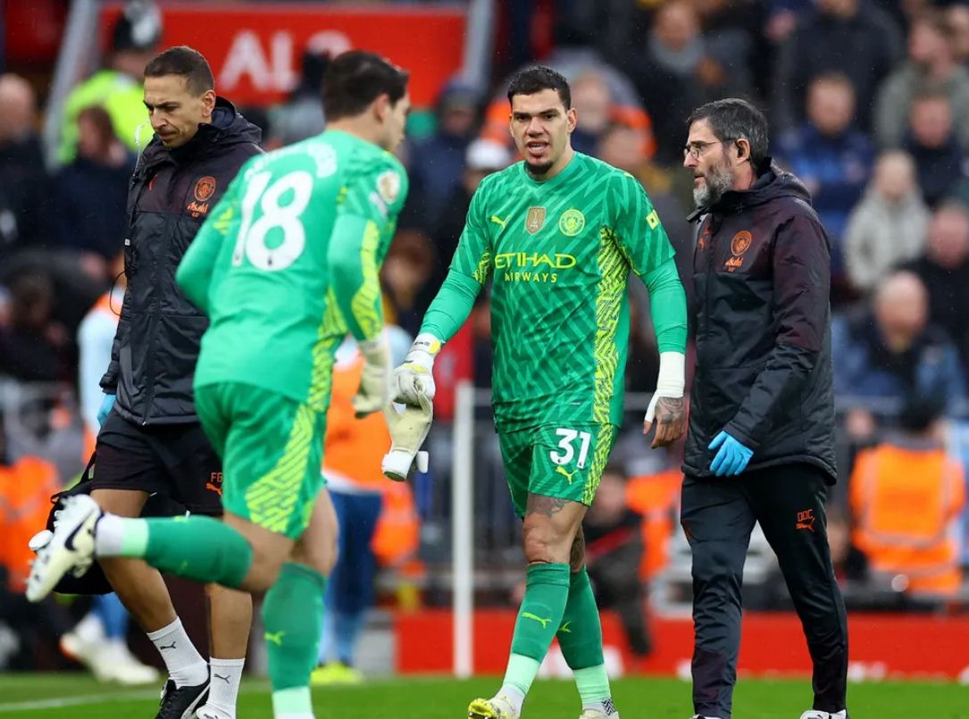 خرج البرازيلي اندرسون حارس مرمى فريق مانشستر سيتي من مباراة ليفربول الجارية الأن على ملعب أنفيلد في الجولة الثامنة والعشرين من الدوري الإنجليزي الممتاز.