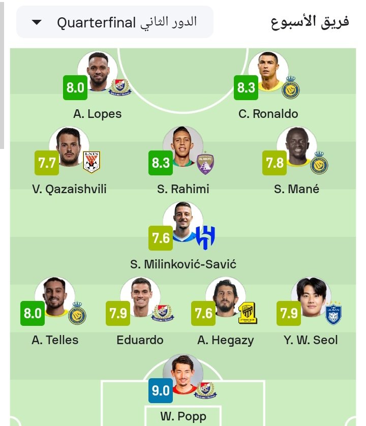 وجاء التشكيل الأفضل لـ إياب ربع نهائي دوري أبطال آسيا كالأتي: