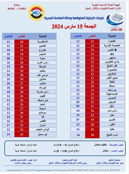 السواحل الشمالية 20 للعظمى والصغرى 12 درجة