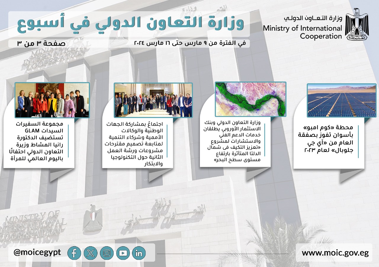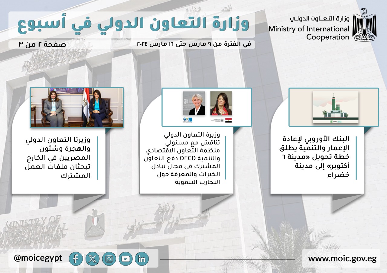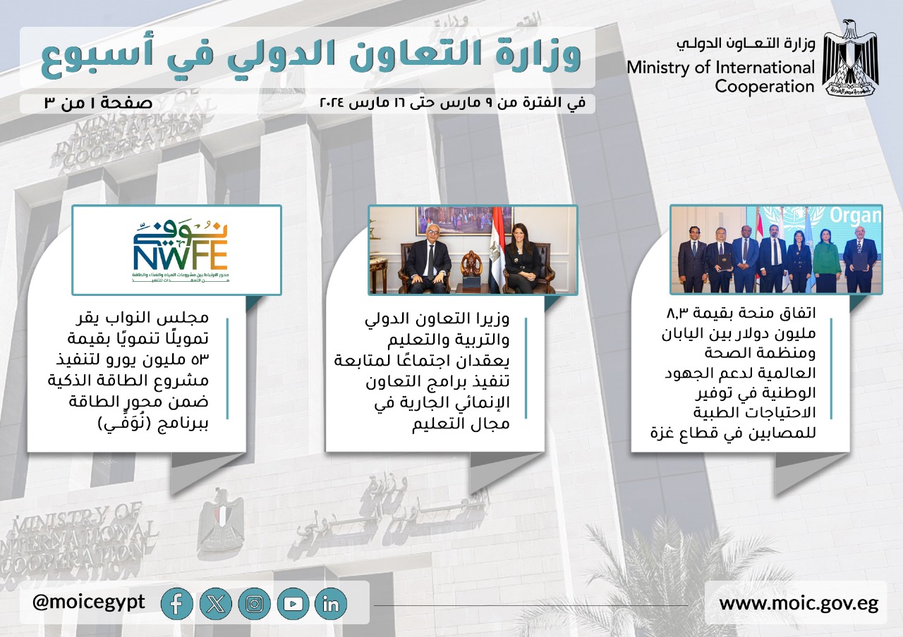 فيديو وصور.. الحصاد الأسبوعي لوزارة التعاون الدولي في الفترة من 9-16 مارس
