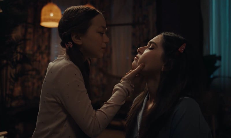 وفور انتهاء أختها الصغرى من وضع المكياج لها، علقت منى: "شكلي أراجوز، مش كتير؟" وهو الأمر الذي يتفق تمامًا مع شخصيتها الجادة سوى أن منة التي تصغرها بأعوام عديدة والتي يبدو أنها أكثر انفتاحًا منها على تلك الأمور، أعطتها من بعض خبراتها لتطمئها حيث قالت لها "خلى بالك إن الميكاب ده بيقول إنك واثقة بنفسك وإنك مش محتاجة حد في حياتك، ودى أهم حاجة المفروض تظهر في المقابلة الأولى".