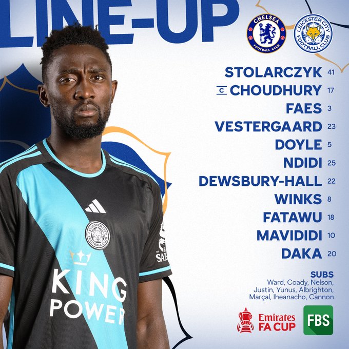 أعلن الجهاز الفنى لفريق الكرة الاول بنادي ليستر سيتي تشكيله الرسمي لمواجهة تشيلسي، التى ستجمع بين الفريقين، ضمن منافسات بطولةكأس الاتحاد الانجليزي لموسم 2023 ـ 2024.