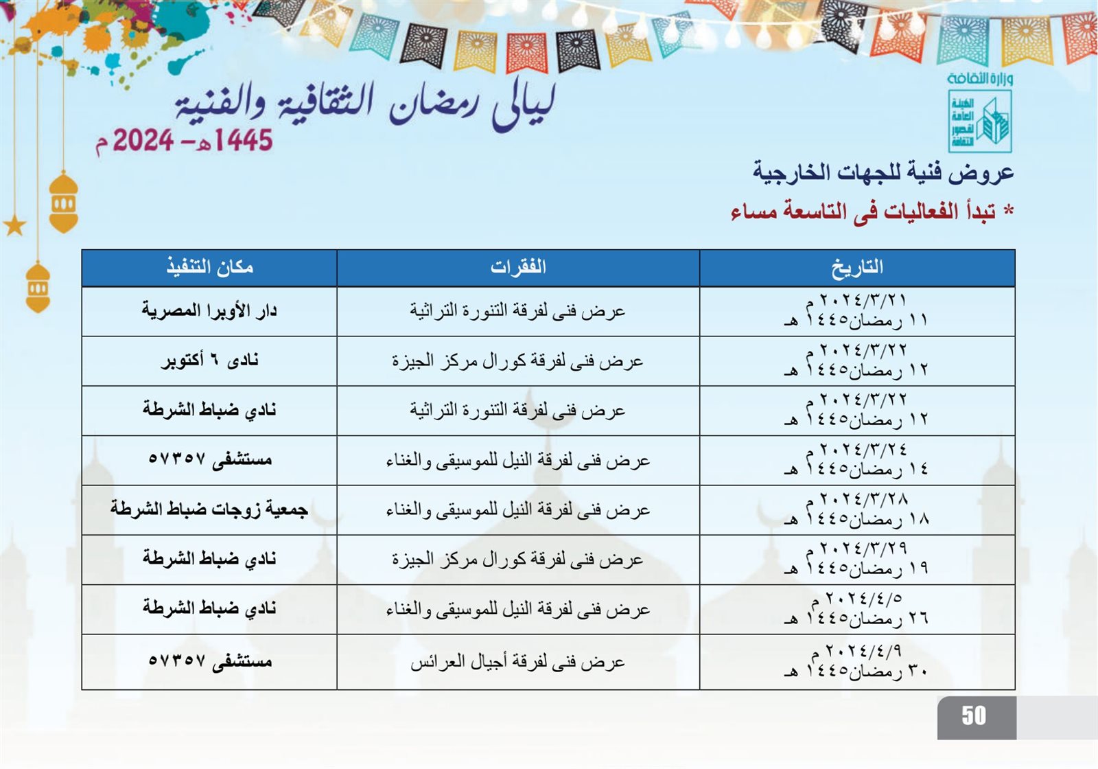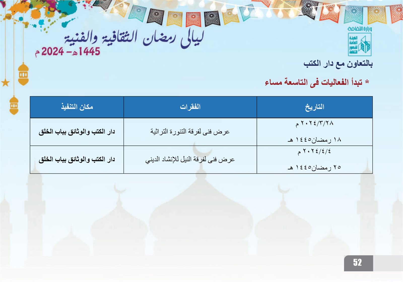 ليالي رمضان .. ننشر البرنامج التفصيلي لاحتفالات قصور الثقافة بالقاهرة