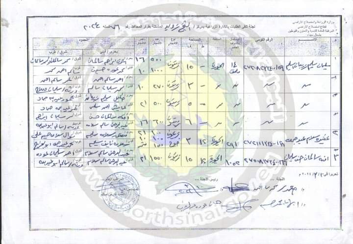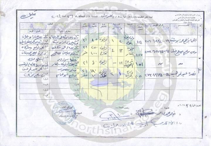 ننفرد.. بأسماء المزارعين المستحقين لصرف التعويضات بمركزي العريش و الشيخ زويد