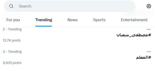 تصدر مسلسل المعلم بطولة مصطفى شعبان لليوم الثاني على التوالي، ترند موقع إكس، وذلك تزامنًا مع عرض الحلقة السادسة والسابعة من مسلسل المعلم، الذي يعرض في الماراثون الرمضاني الحالي حصريًا على قناة الحياة، وهو أحد أهم إنتاجات الشركة المُتحدة للخدمات الإعلانية هذا العام.