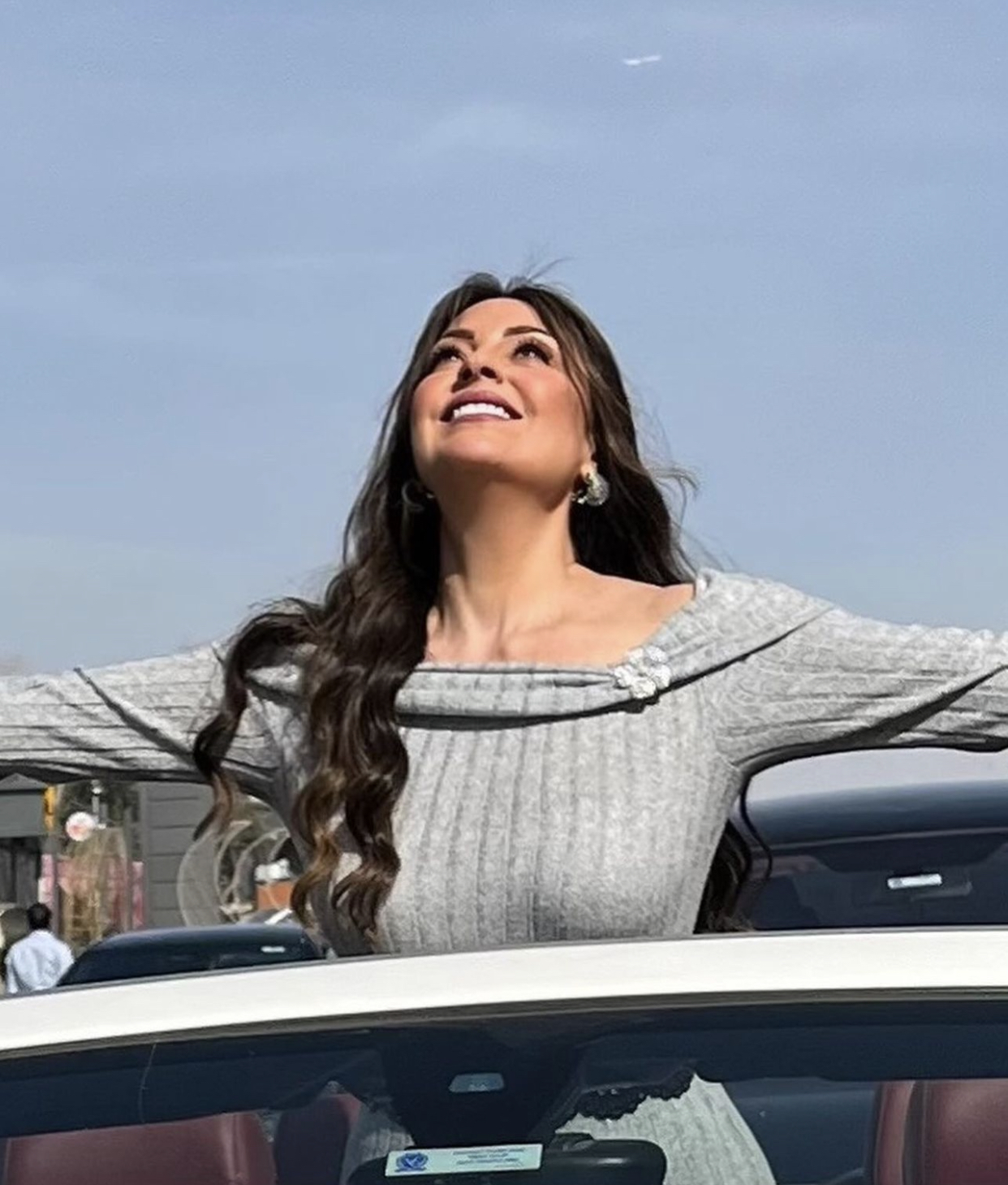 واختارت نرمين الفقي تصفيفة شعر جذابة جعلتها أكثر أنوثة، فثبتت بعض الخصلات علي الجانبين، وتركت باقي شعرها ينسدل على الظهر وأحد الكتفين، مع غرة تتدلى علي وجهها بشكل مرتب وناعم.