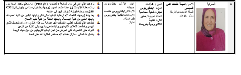 السيرة الذاتية لـ أميمة طلعت علي الأم المثالية في المنوفية