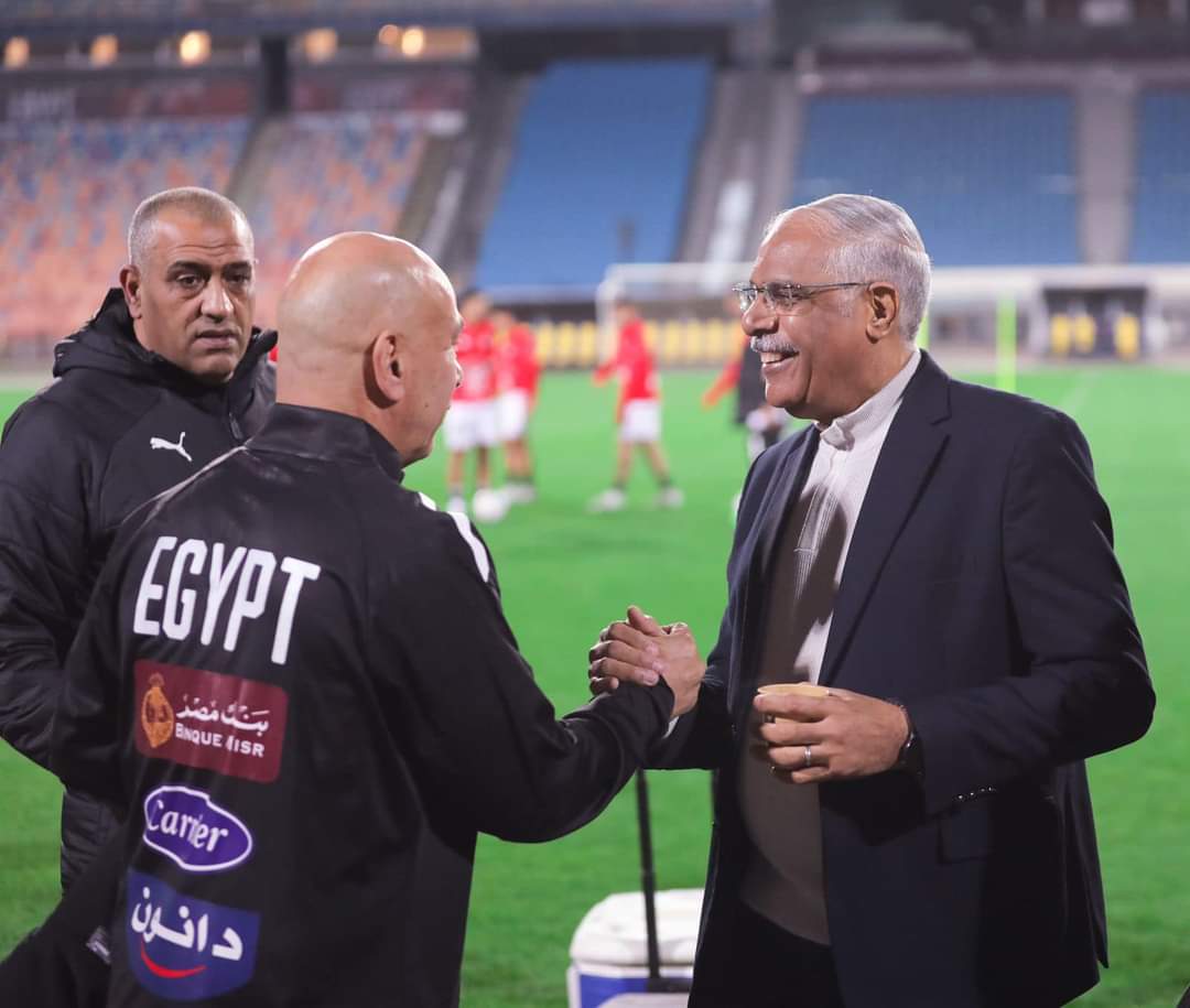 حضر مران منتخب مصر الاستاذ جمال علام رئيس مجلس إدارة اتحاد الكرة و الأستاذ محمد الماشطة المستشار القانوني لاتحاد الكرة .