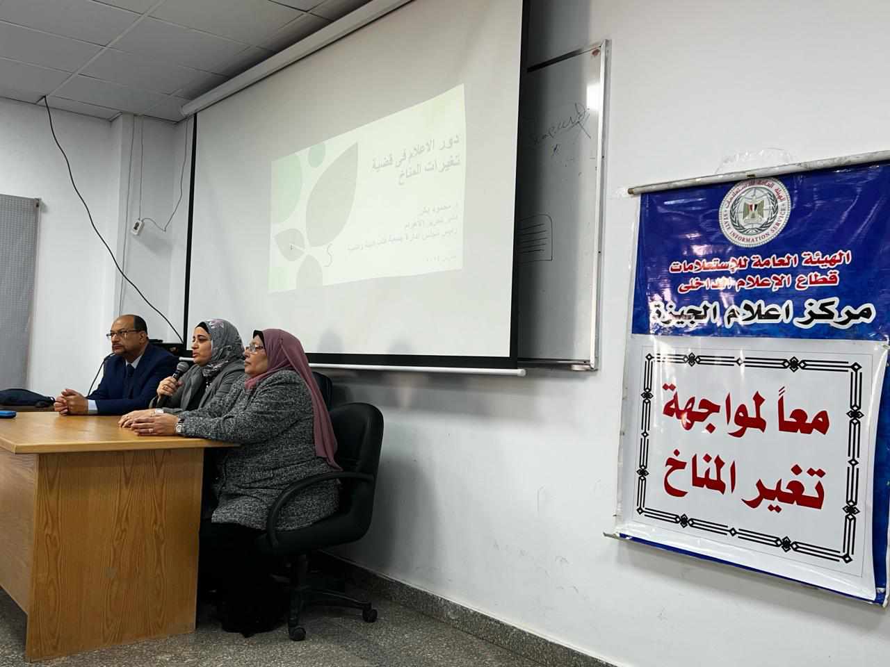 في ضوء الحمله التى أطلقتها الهيئه العامه للاستعلامات قطاع الإعلام الداخلى برئاسة الدكتور احمد يحيى رئيس قطاع الاعلام الداخلي وتوجيهات الدكتور ضياء رشوان رئيس الهيئة العامه للاستعلامات (معا لمواجهة التغيرات المناخية)، نفذ مركز اعلام الجيزه بالتعاون مع كلية الإعلام جامعة الأهرام الكندية برئاسة الدكتورة إيناس أبو يوسف عميدة الكلية وإشراف دكتورة أماني رضا وكيل الكلية لشئون خدمة المجتمع وتنمية البيئة، يوم الاحد الموافق ٢٠٢٤/٣/١٧، ندوه بعنوان (دور الإعلام في مواجهة التغيرات المناخية) حضرها عدد كبير من طلاب وأساتذة الكلية.