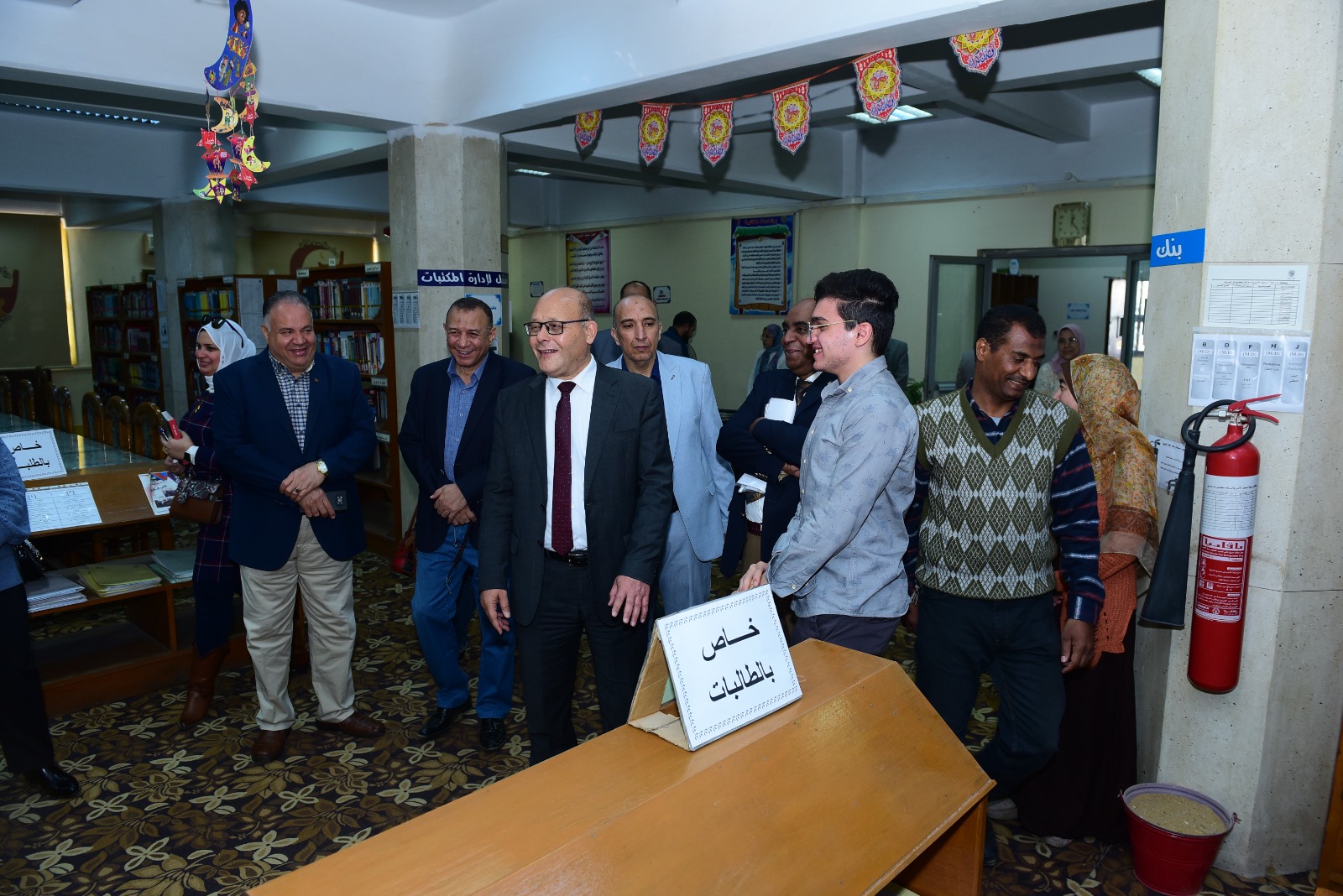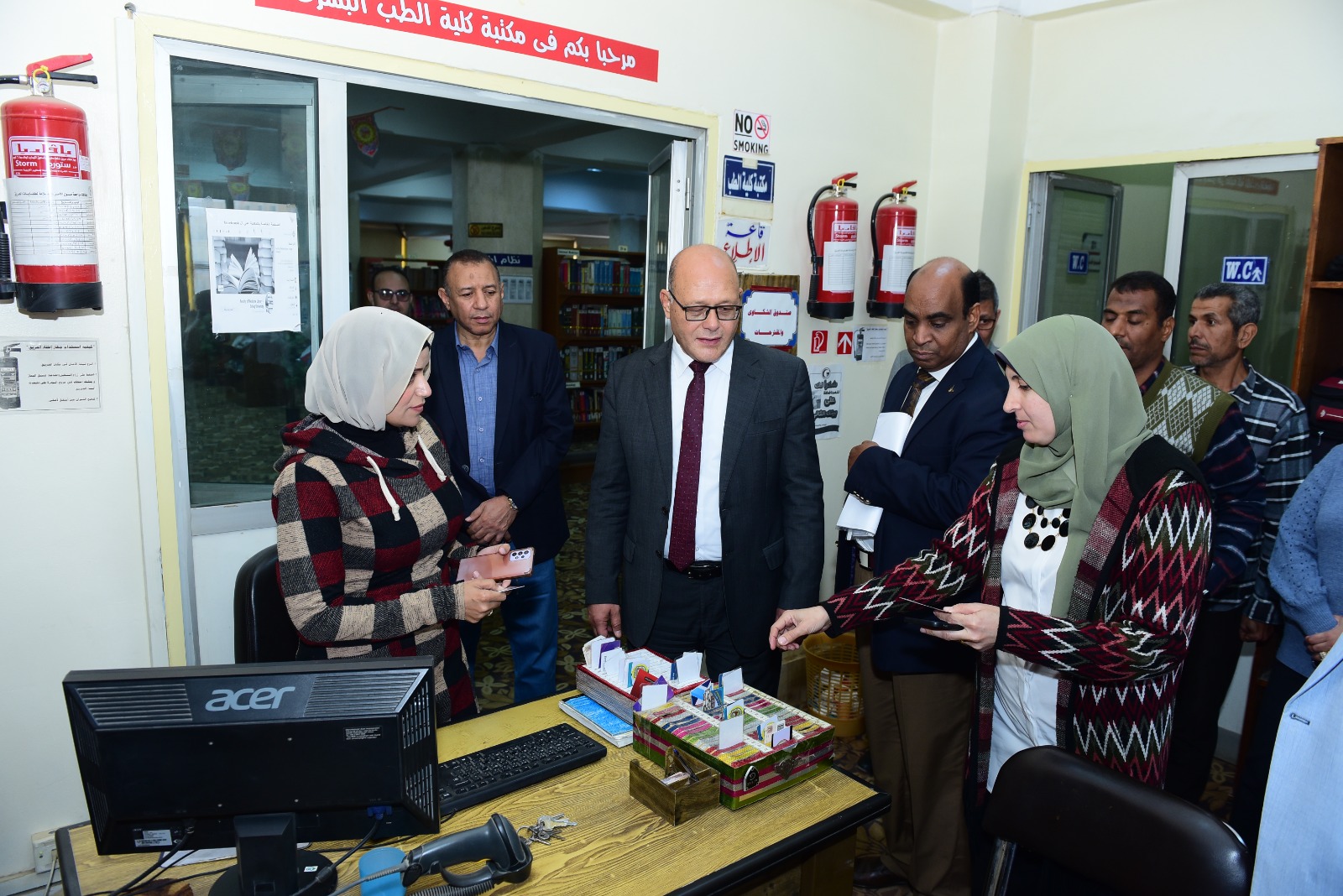 جاء ذلك خلال تفقد رئيس الجامعة لسير العمل داخل مكتبة كليتي العلوم والطب البشري داخل مبني الخدمات بالحرم الجامعي القديم، يرافقه الدكتور مجدي امين القاضي عميد كلية الطب البشري، وايمان كامل احمد مدير مكتبه كلية الطب، ومحمد مختار مدير مكتبه كلية العلوم وعدد من أعضاء هيئة التدريس بالجامعة.