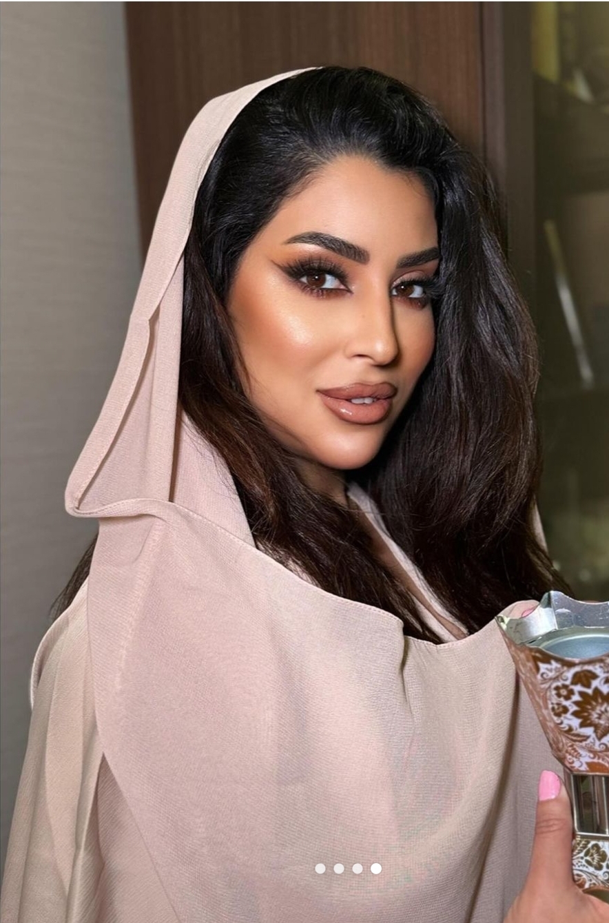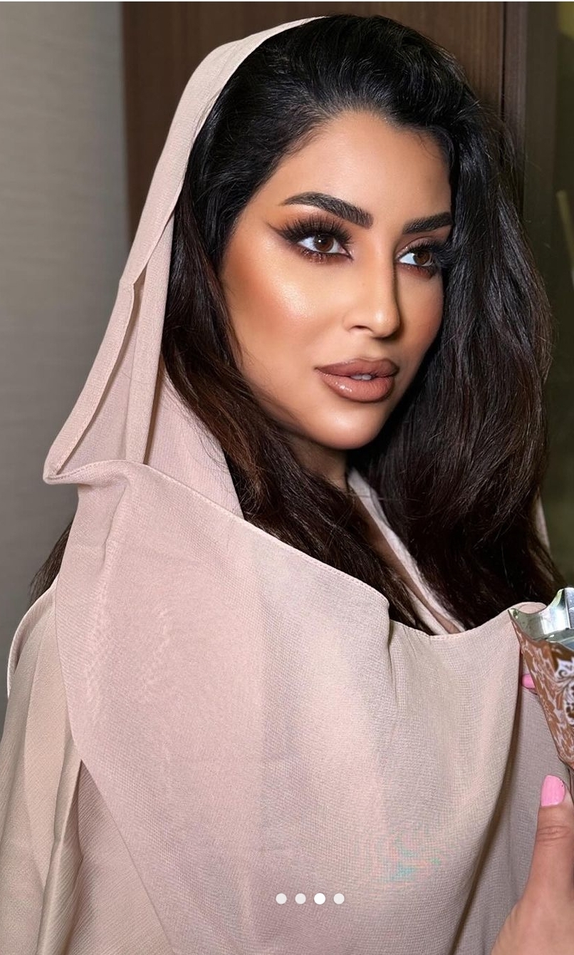واختارت ترك خصلات شعرها منسدلة بحرية فوق كتفيها بشكل ناعم ووضعت مكياجا صاخبا مرتكزًا على ألوان النود  تحديد عينيها بالكحل والماسكرا السوداء ولون النود في الشفاه  لتبدو ملامحها مختلفه عن المعتاد.