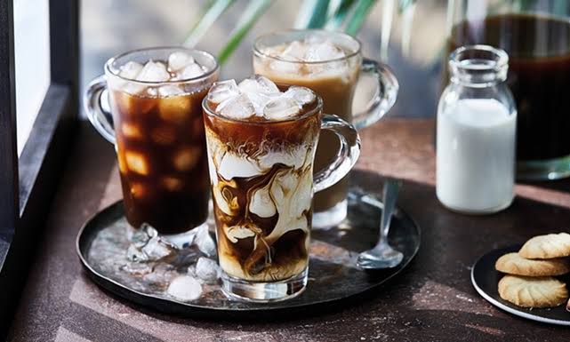 صُبي القهوة في كوب التقديم وزينيها بالكريمة وقدميها فوراً.