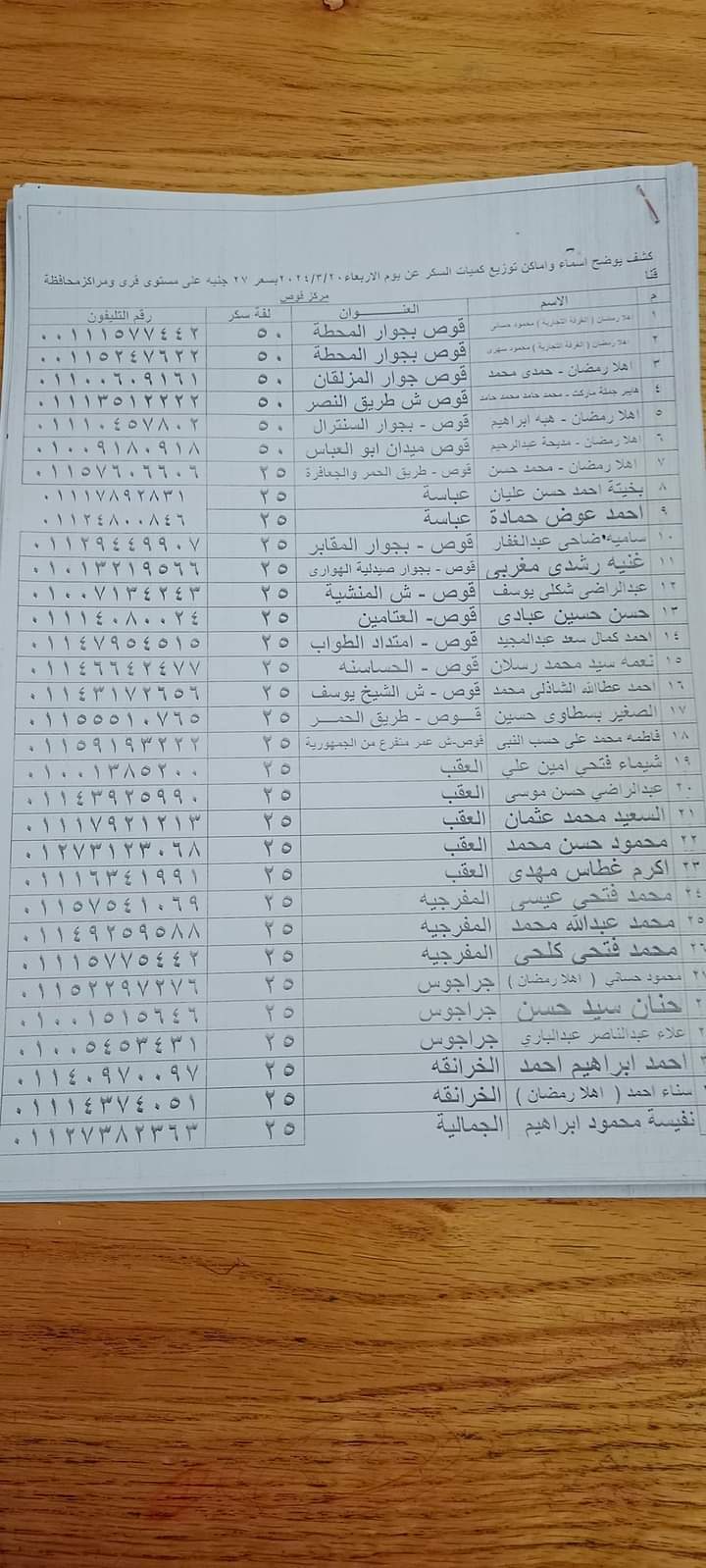 ننشر كشوف بيع سكر المبادرة بمركز محافظة قنا اليوم الأربعاء