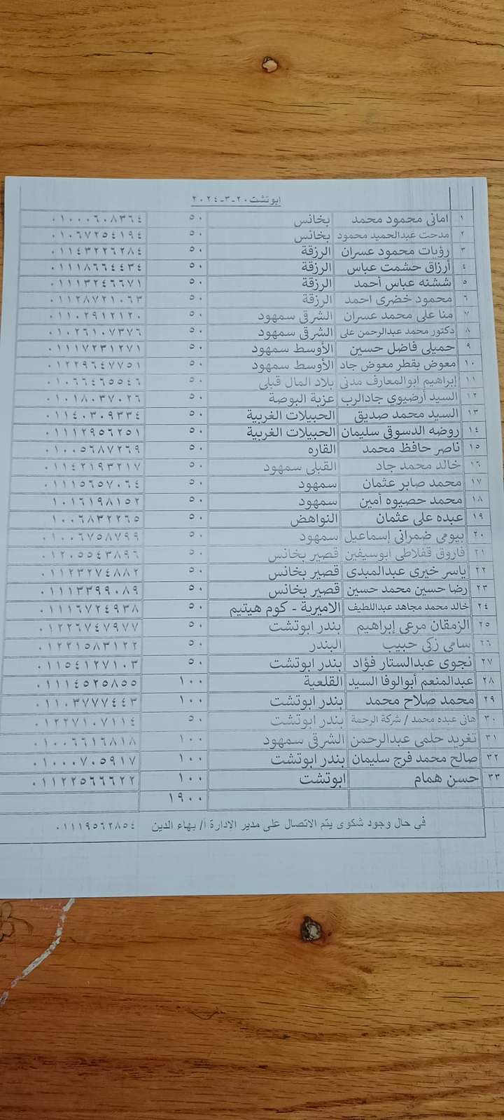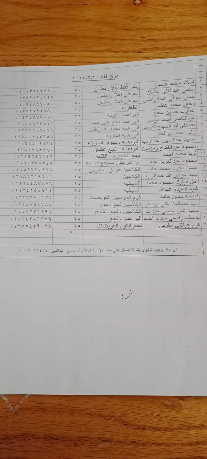 وتشمل كشوف توزيع السكر المدعم، اسماء التجار المعتمدين من أصحاب السجلات التجارية، مما يتم دعمهم بشكل يومى بكميات من السكر لطرحها على المواطنين بسعر ٢٧ جنية للكيلو، بالإضافة، الإعلان عن أرقام هواتفهم، بالإضافة لتدوين أرقام هواتف مديرى الإدارات التموينية بمختلف مراكز المحافظة.
