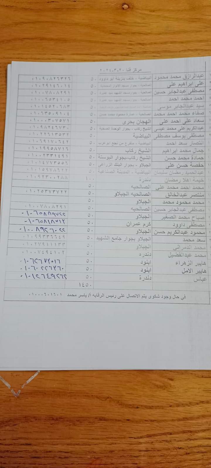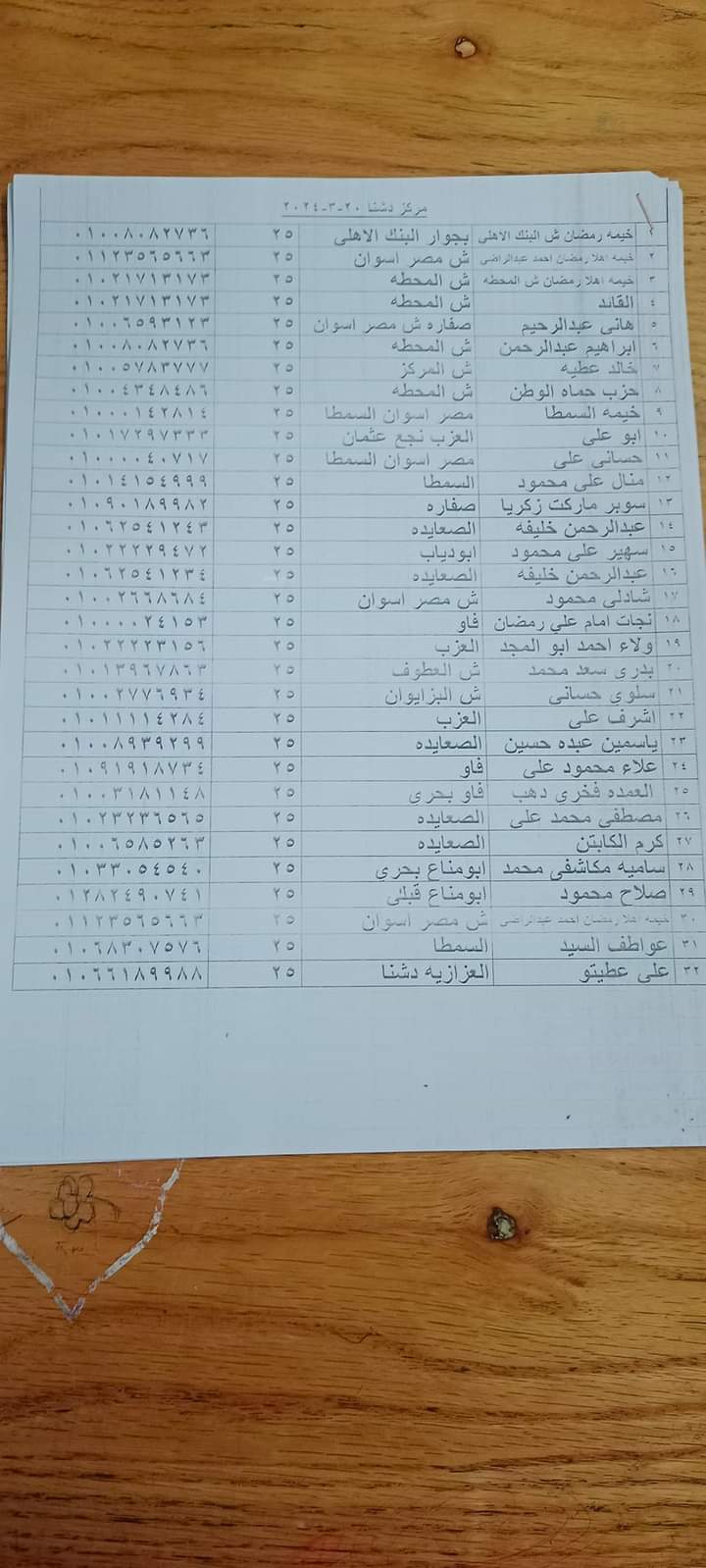 وتشمل كشوف التوزيع مراكز محافظة قنا :
