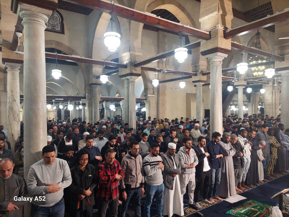 اصطف آلاف المصلين اليوم الأربعاء في الليلة الحادية عشر من شهر رمضان المبارك، لأداء صلاتي العشاء والتراويح بالجامع الأزهر، حيث يجتمع المسلمون من مصر وعواصم العالم في رحاب الأزهر الشريف، مع حضور كبير للطلاب الدارسين في الأزهر من أكثر من مئة دولة من كل قارات العالم، جاؤوا وقلوبهم وجلة فيسارعون في الخيرات سائلين الله الغفران والقبول والرحمات والجنات.