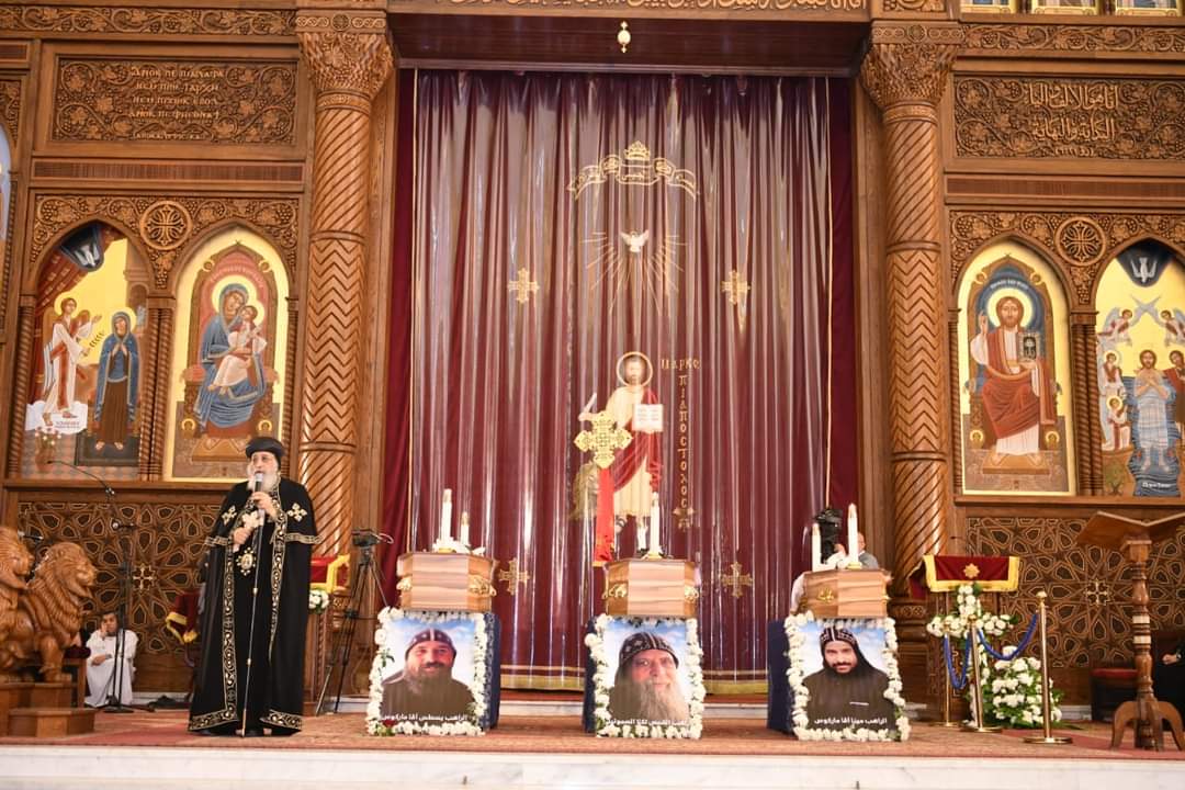 وأضاف قداسته: "تمت الصلاة عليهم أيضًا هنا في الكاتدرائية، وفي دير الأنبا صموئيل المعترف، حيث تم دفنهم هناك، لأن الراهب يجب أن يدفن داخل الدير".