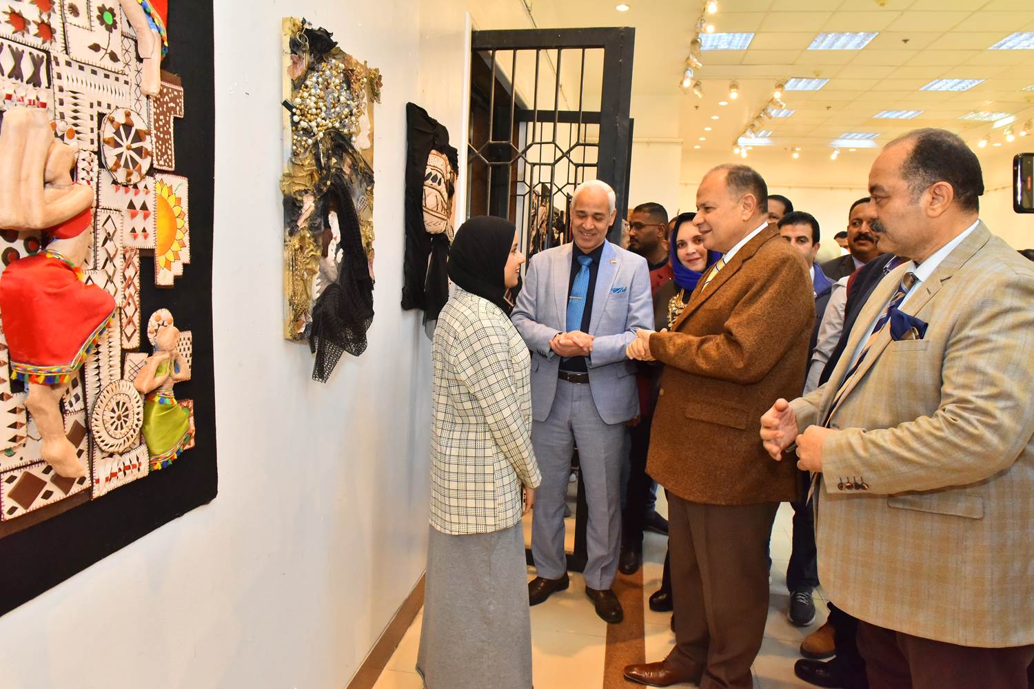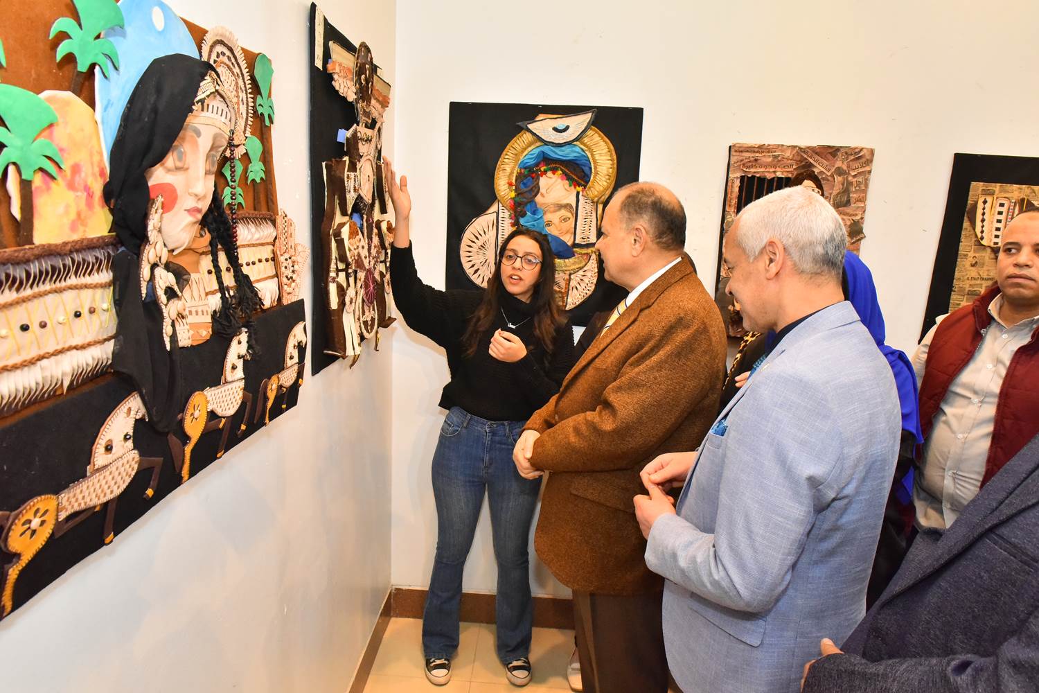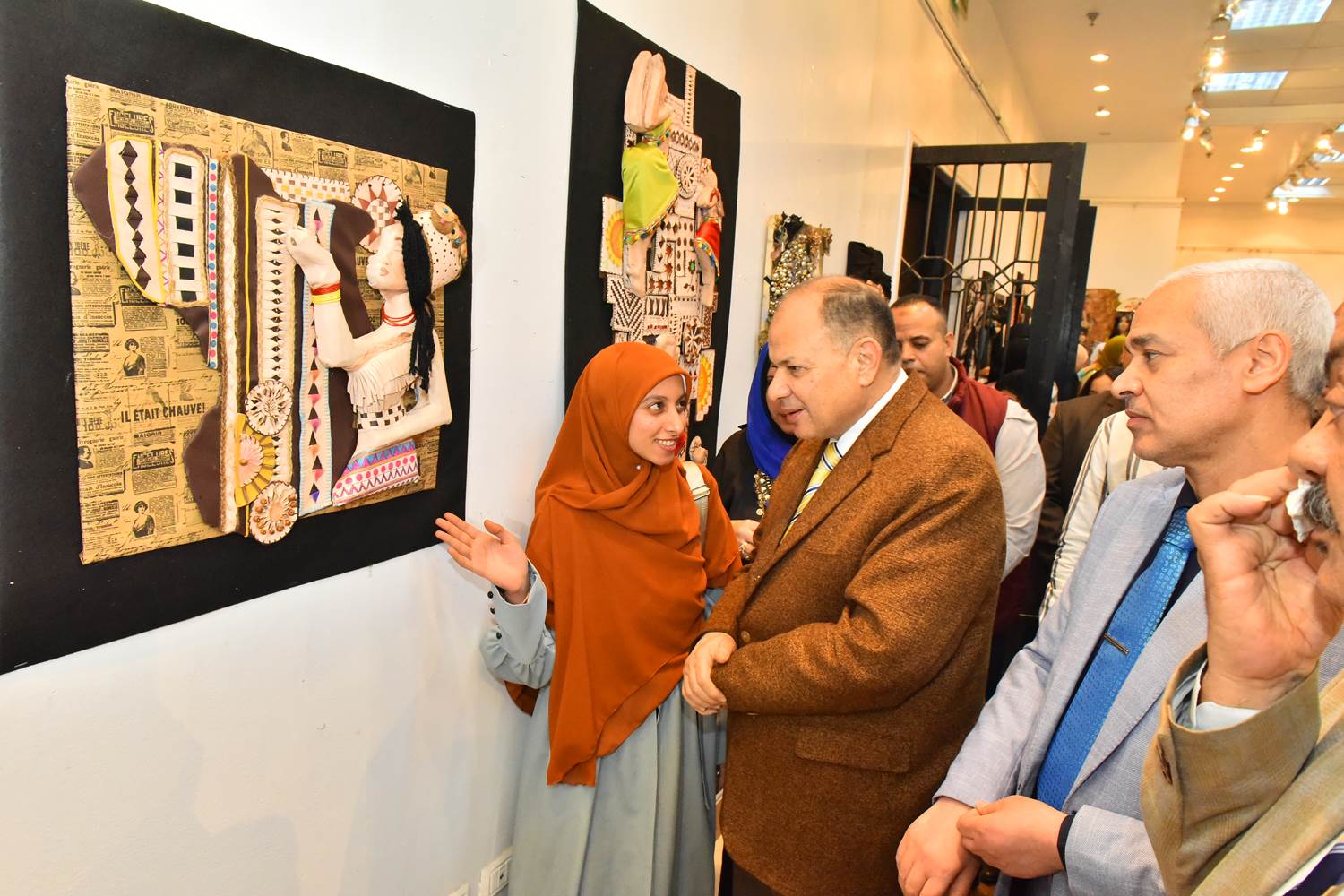 كما تفقد المحافظ بعض الأعمال الفنية لبعض الطالبات من ذوى الهمم "الصم والبكم" والتي تميزت بالجودة والتعبير الدقيق عن المشاعر الانسانية، مشيدًا بالأعمال الفنية المشاركة، كما أشاد ببعض الأعمال الفنية للدكتورة منى مصطفى والتي شاركت بها في المعرض وتعبر عن المشاعر الانسانية النبيلة مستخدمة خامات البيئة الطبيعية وتجربة نوع من العلاج بالفن وتعبير عن المشاعر الداخلية التي يمر بها الفنان وقد لايستطيع التعبير عنها أو اظهارها أمام أحد فمن خلال تلك الأعمال حاولت الفنانة تجسيد تلك المشاعر من خلال أعمال ملموسة تطرد مابداخله من مشاعر لا يستطيع أن يبوح عنها.