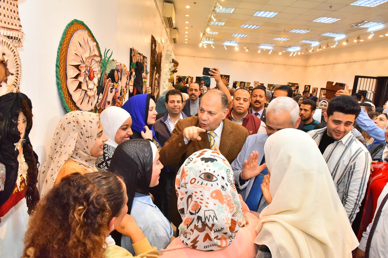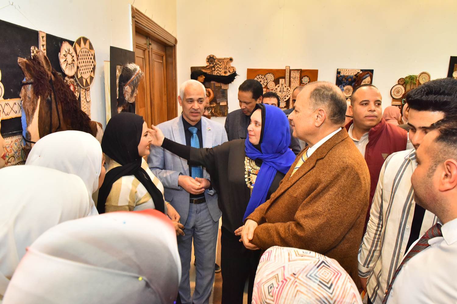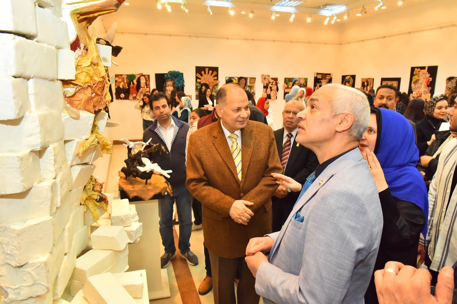 كما تفقد المحافظ بعض الأعمال الفنية لبعض الطالبات من ذوى الهمم "الصم والبكم" والتي تميزت بالجودة والتعبير الدقيق عن المشاعر الانسانية، مشيدًا بالأعمال الفنية المشاركة، كما أشاد ببعض الأعمال الفنية للدكتورة منى مصطفى والتي شاركت بها في المعرض وتعبر عن المشاعر الانسانية النبيلة مستخدمة خامات البيئة الطبيعية وتجربة نوع من العلاج بالفن وتعبير عن المشاعر الداخلية التي يمر بها الفنان وقد لايستطيع التعبير عنها أو اظهارها أمام أحد فمن خلال تلك الأعمال حاولت الفنانة تجسيد تلك المشاعر من خلال أعمال ملموسة تطرد مابداخله من مشاعر لا يستطيع أن يبوح عنها.