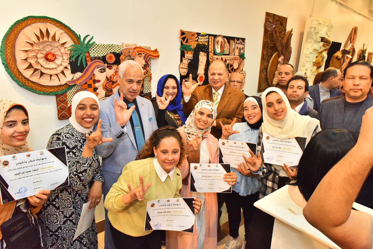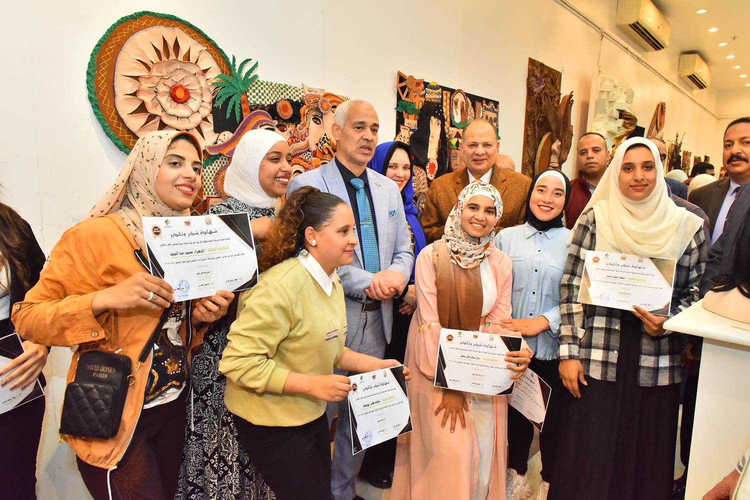 جاء ذلك بحضور الدكتور أحمد عبدالمولى نائب رئيس جامعة أسيوط لشئون التعليم والطلاب وضياء مكاوي رئيس الإدارة المركزية لاقليم وسط الصعيد الثقافي والدكتور وجدي رفعت عميد كلية التربية النوعية بجامعة أسيوط والدكتورة هالة صلاح رئيس قسم التربية الفنية وصفاء كامل مدير قصر ثقافة أسيوط وعيون ابراهيم رئيس حي غرب.