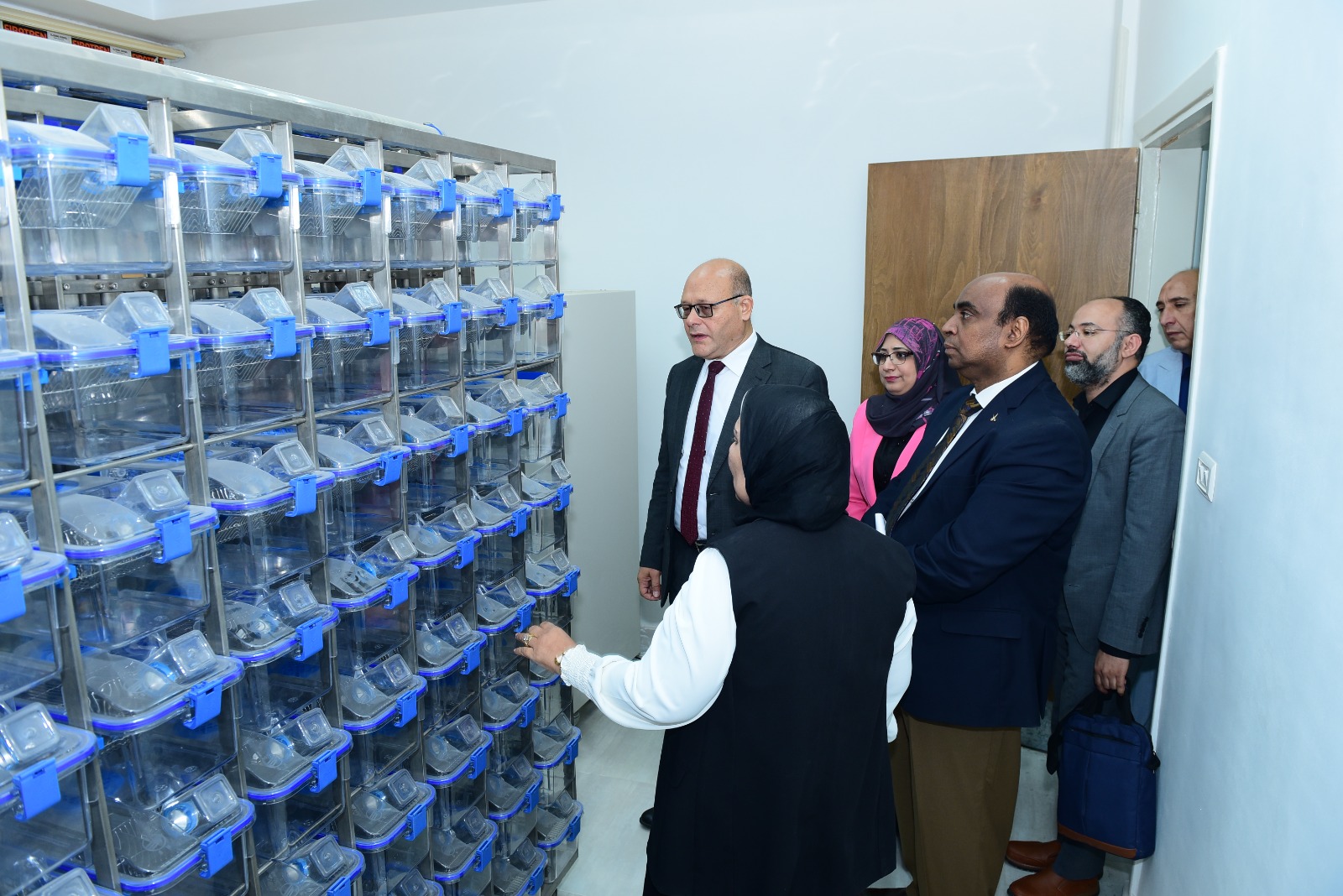 وقالت الدكتورة إيمان أبو ضيف ان المركز يضم وحده لفحص الدوران الدموى الميكروسكوبى فى حيوانات المختبر أثناء الحياة, وهى تقنية علمية متقدمة تدخل حيز التنفيذ لأول مرة بجمهورية مصر العربية ومنشأة لرعاية حيوانات المختبر بنظام التهوية المنفردة للأقفاص لأول مرة فى الجامعات والمراكز البحثية المصرية خارج القاهرة والإسكندرية، حيث توفر هذه التقنية بيئة بالغة النقاء والحماية لحيوانات المختبر ضد العدوى قبل وبعد العمليات الجراحية مع الوقاية الكاملة للباحثين ومقدمى الرعاية لحيوانات المختبر.