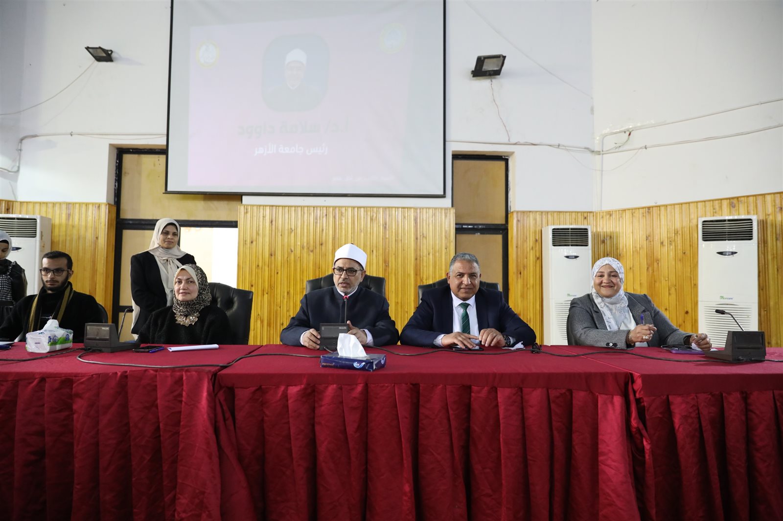واستعرض رئيس الجامعة سيرة ومسيرة المرأة في جامعة الأزهر وعناية ورعاية فضيلة الإمام الأكبر بها؛ حيث أوضح أن جامعة الأزهر بها 93 كلية ممتدة من أسوان حتى الإسكندرية نصف هذه الكليات هي كليات تعنى بتعليم الطالبات أمهات المستقبل، بل إن آخر أربع كليات تم افتتاحهن خلال هذا العام الدراسي هي: كلية الهندسة بنات بقنا، وكلية الزراعة بنات بالقاهرة، وكلية البنات الأزهرية بمحافظة الوادي الجديد، إضافة إلى التجهيز لافتتاح كلية البنات الأزهرية بمحافظة مرسى مطروح العام القادم بإذن الله.