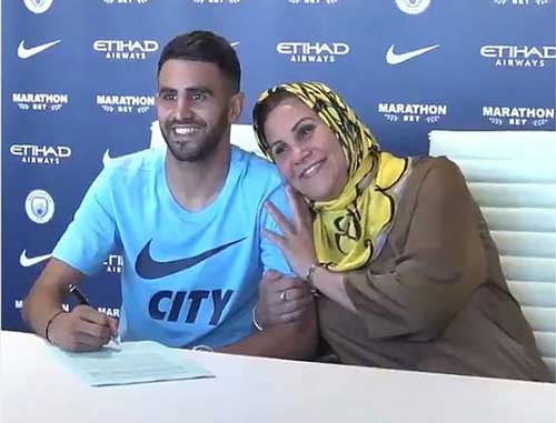 اصطحب النجم رياض محرز، لاعب المنتخب الجزائري والأهلي السعودي، والدته معه عند توقيعه على عقد انتقاله إلى صفوف مانشستر سيتي، في أغسطس عام 2018.