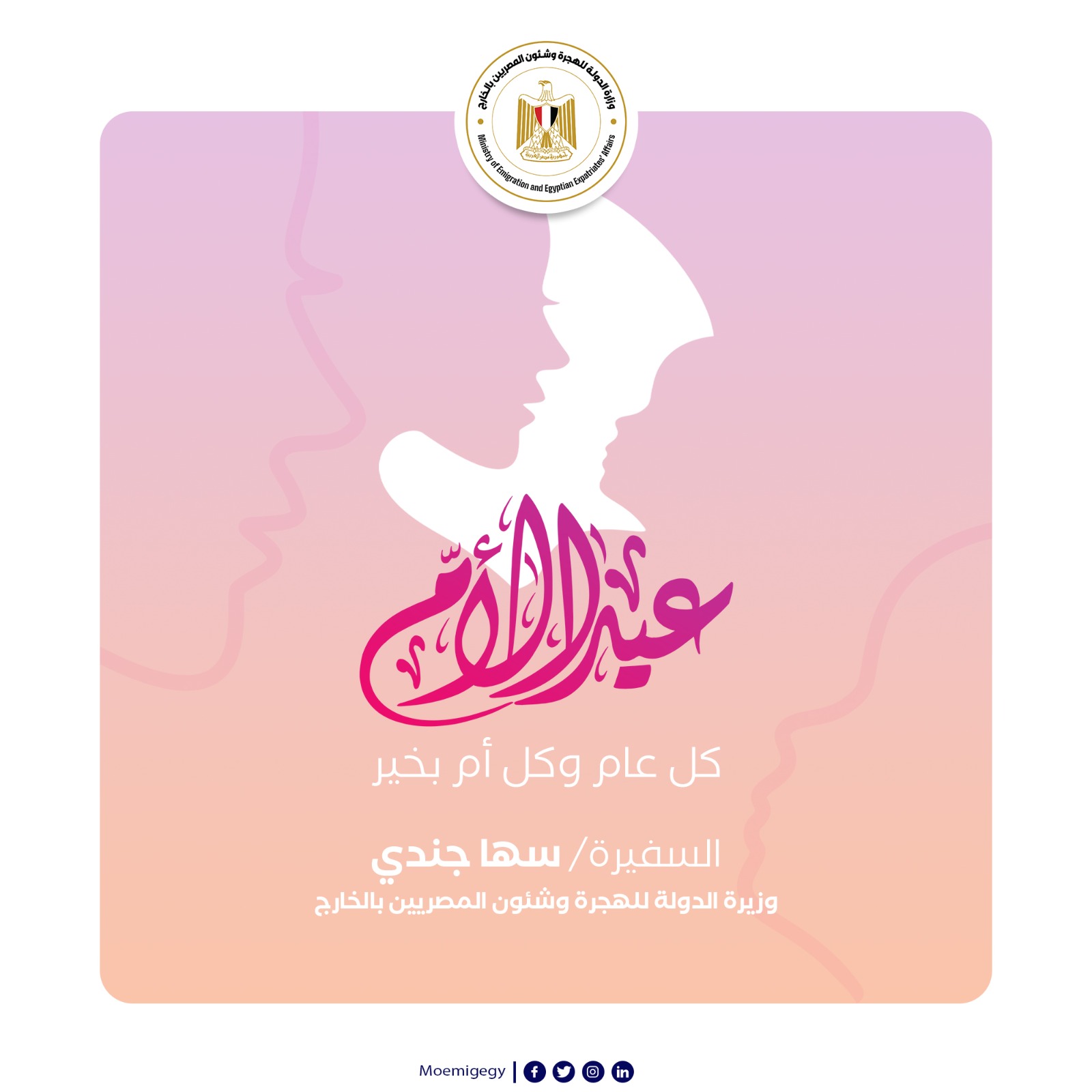 وقالت وزيرة الهجرة، عبر منشور على صفحتها الرسمية على الفيس بوك: “ صادق التهاني القلبية بمناسبة حلول عيد الأم لكل أم مصرية، في الخارج والداخل تهانينا القلبية ومحبتنا وانحناؤنا احتراماً للسيدات الفضليات صانعات الرجال وحجر الزاوية لبيوتهن”.