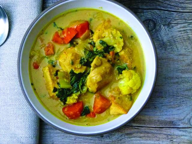 كاري بالخضار.. يُعزز الكاري صحة القلب، من خلال زيادة تدفق الدم وتحسين عمل الأوعية الدموية، وهو بإضافته إلى الكركم والخضروات الغنية بالفيتامينات في طبق واحد، يشكل خليطاً غنياً، يعود للمطبخ الهندي.