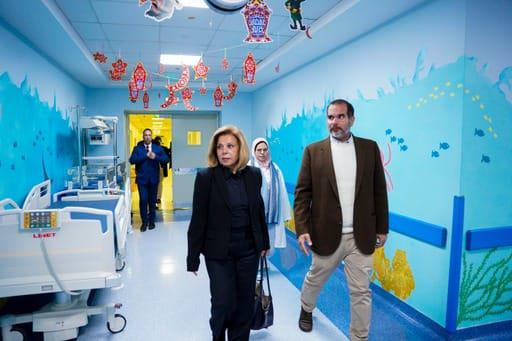وأشادت خطاب، بالمستوي المتميز لكافة التخصصات مثل عمليات القلب المفتوح وغيرها من الخدمات الطبية والصحية والثقافية والاجتماعية التي تقدمها المستشفي وخاصة الخدمات المقدمة للأطفال. نظرا لأنّ الأطفال هم الأكثر تأثراً، كما انهم اكبر واهم شريحة سكانية في مصر.