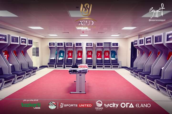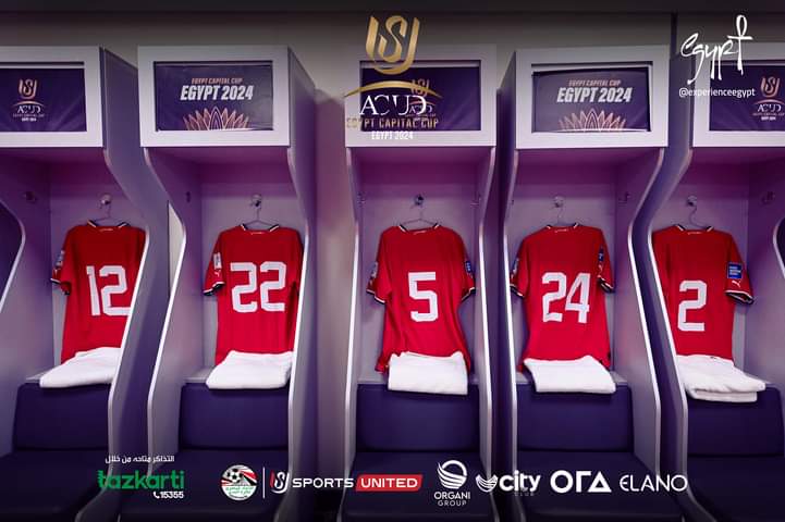 صور من غرف تبديل ملابس منتخب مصر قبل بداية اول مباراة  بكأس عاصمة مصر، المقامة في العاصمة الإدارية الجديدة.