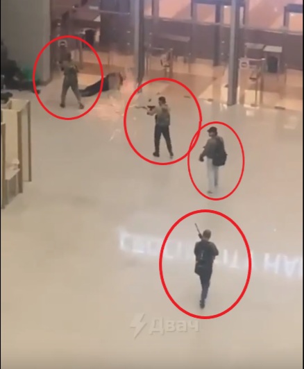 وظهر في فيديو التقطته كاميرات المراقبة صور أربعة رجال يرتدون ملابس مموهة يحملون بنادق ويصوبون تجاه رواد مجمع كروكوس.