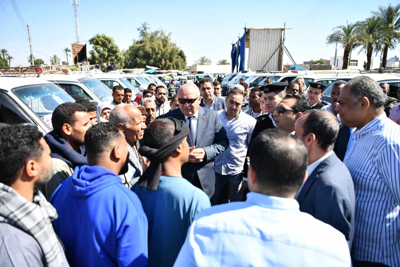 رافق المحافظ، الدكتور حازم عمر نائب المحافظ، وحسن محمد القط مدير عام مديرية التموين والتجارة الداخلية و العقيد هاني مرسي وكيل إدارة مرور قنا، والعقيد تامر النجار رئيس مباحث التموين، ومحمد حسن عطاالله رئيس لجنة المواقف.