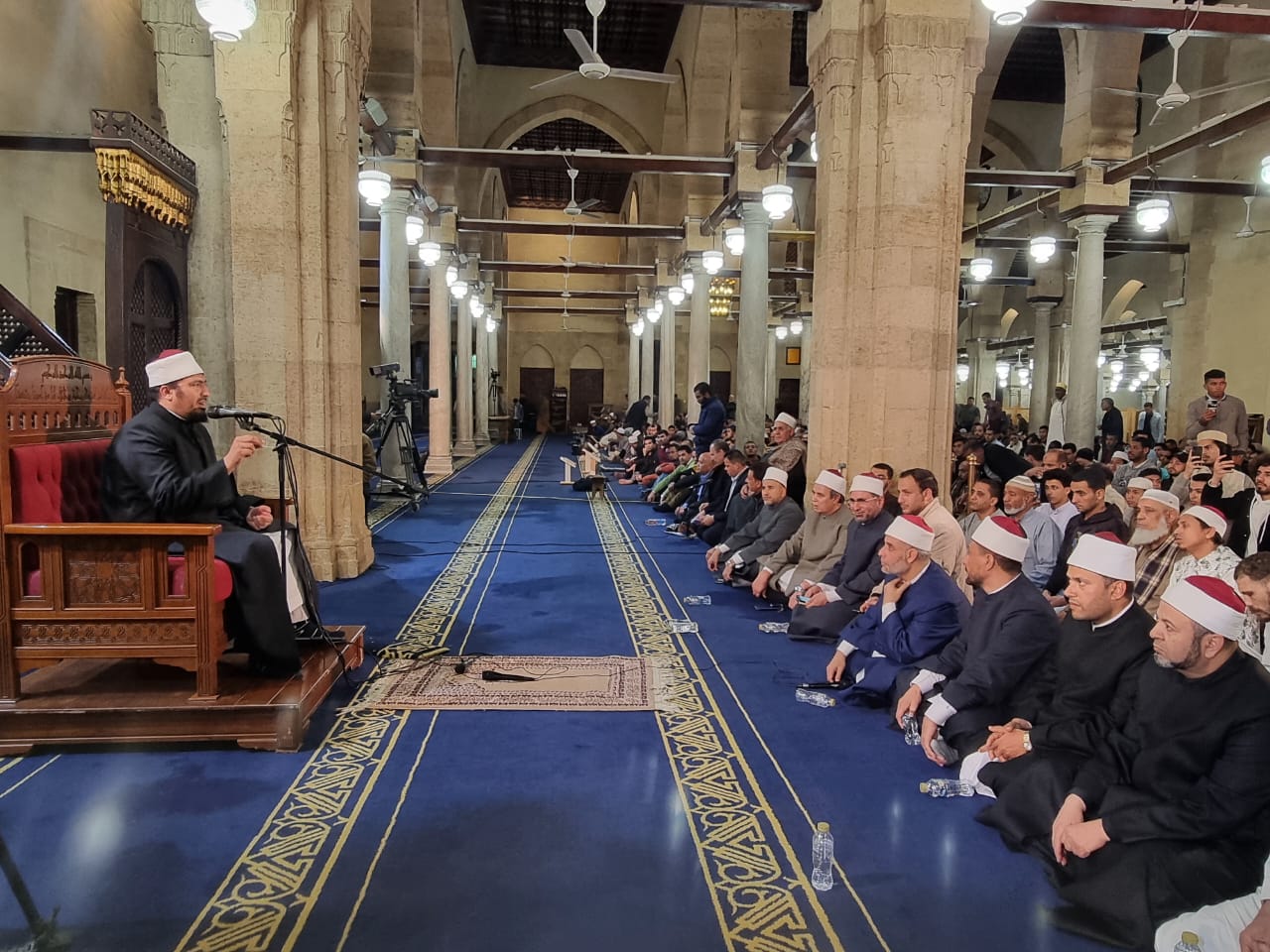 وأكد أن القرآن كلام الله ومأدبة الله كما قال ﷺ: (إنَّ هذا القرآنَ مأدبةُ اللهِ فاقبَلوا مأدُبتَه ما استطعتم)، والمأدبة يجتمع حولها الناس، فينبغي أن يجتمع المسلمون في الدنيا حول القرآن الكريم، لأنه الصاحب الوفي الذي ينفع صاحبه يوم القيامة، ولا يترك صاحبه هَملًا؛ وإنما يرفعه على رؤوس الناس في الدنيا بالإضافة إلى المنقبة التي ينالها في الآخرة، فما أجمل أن نلتف حول القرآن ونستمسك به ونتلوه حق تلاوته ونتدبره حق تدبره ونعمل به ونطبقه كما أمرنا الحق سبحانه وتعالى، سائلا المولى عز وجل أن يجعلنا من أهل القرآن وأن يديم فينا بركة القرآن يحيينا على القرآن ويحشرنا تحت لواء القرآن.