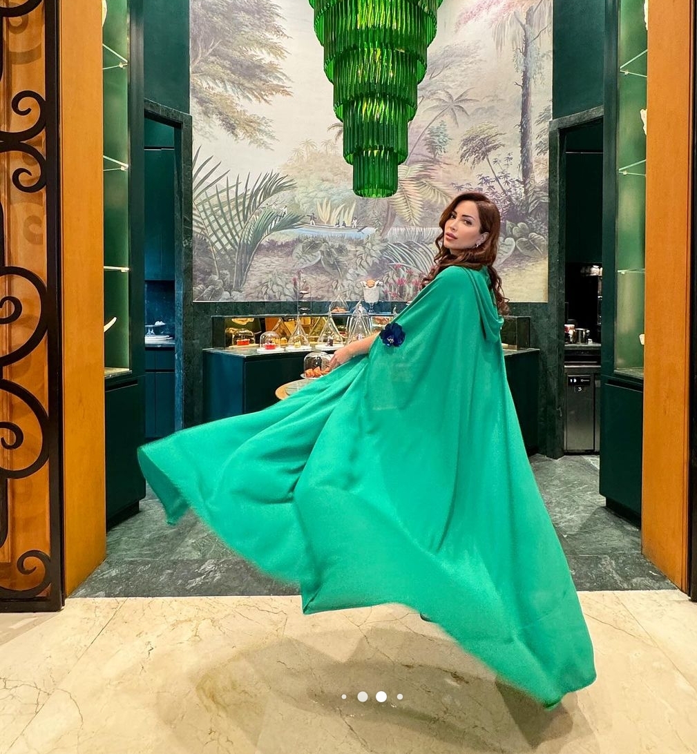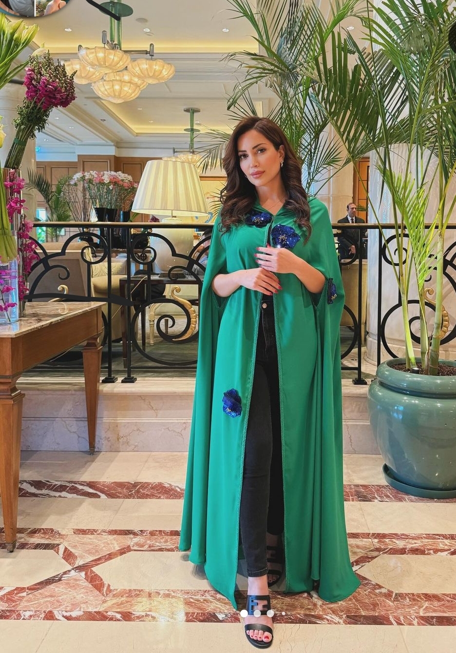 وبدت نسرين طافش بإطلالة رمضانية جذابة، حيث ارتدت كرديجان صمم من قماش الكريب اللون الأخضر الفاتح ونسقت عليه بادي وبنطال لتعيش إجواء الاحتشام والأناقة في نهار شهر رمضان المبارك.