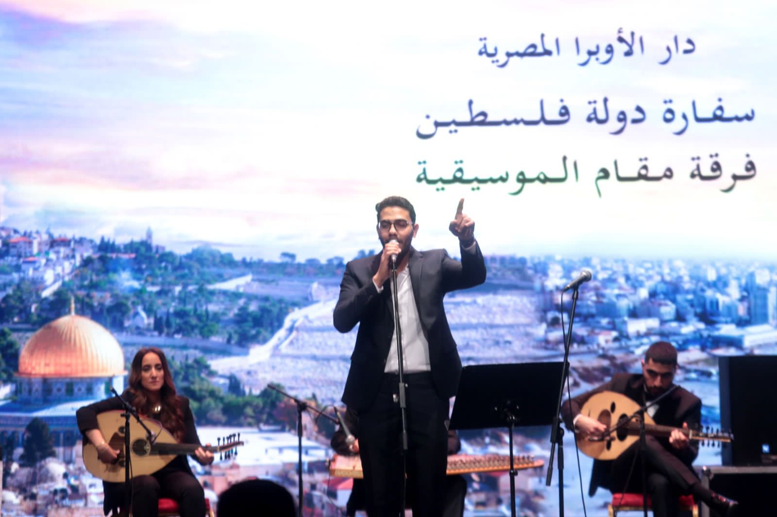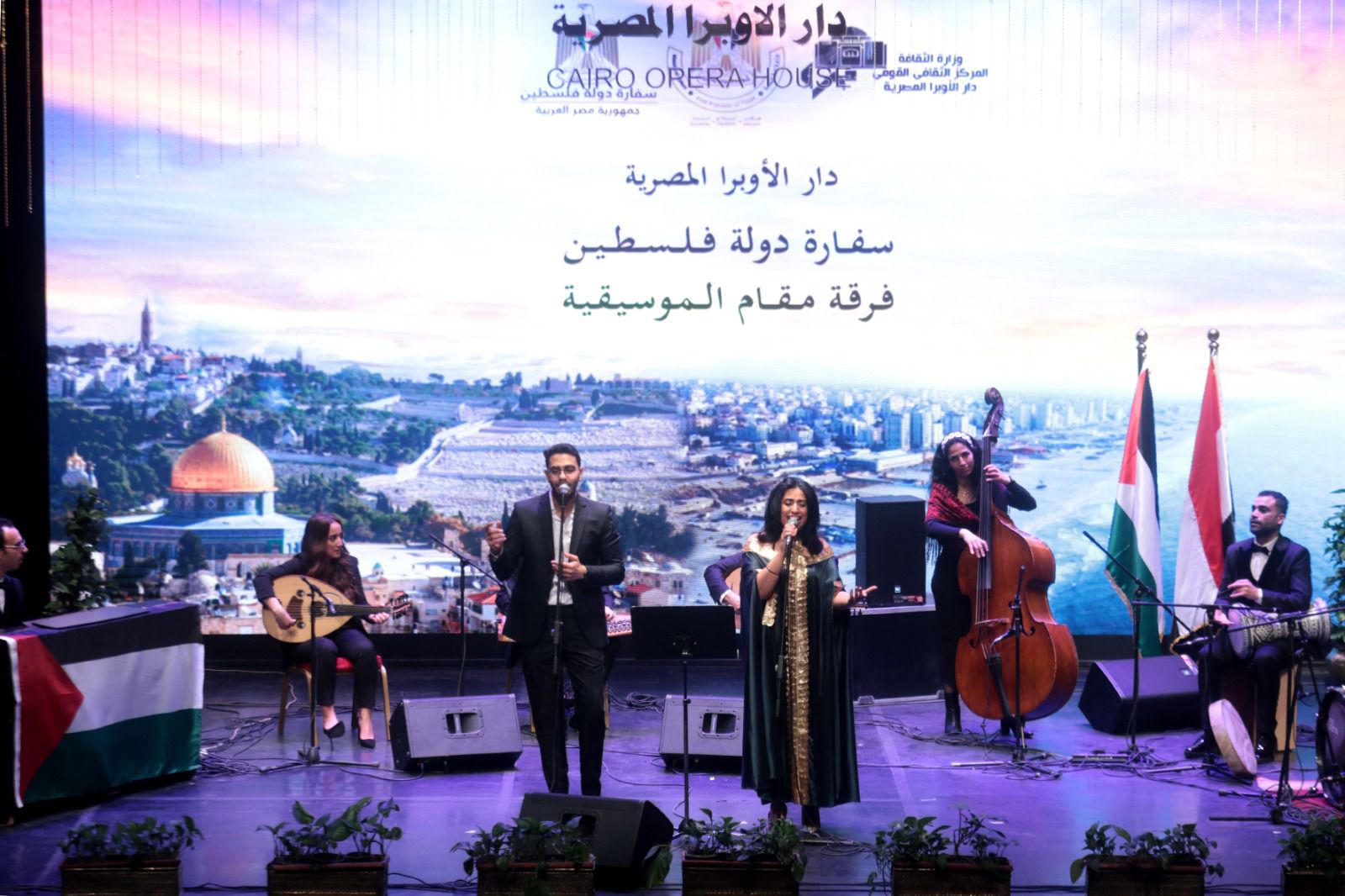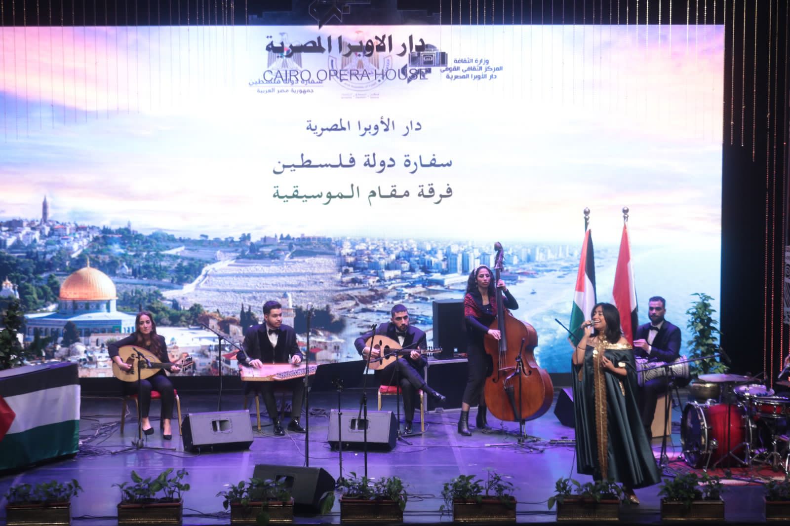 وكان الحفل قد بدا بعزف السلام الوطنى المصرى والفلسطينى ، كما القت سلسبيل بسيسو مدير المركز الإعلامي بالسفارة كلمة ابرزت خلالها ثقة الجميع فى انتهاء معاناة الشعب الفلسطينى ، بعدها قدمت فرقة مقامات بقيادة مؤسسها أنس النجار نماذج من الفلكلور وعدد من التابلوهات الاستعراضية الى جانب اناشيد وطنية حماسية ومختارات من الموسيقى العربية باسلوب يمزج بين الشكل التراثى والمعاصر مع الحفاظ على طابعها الفنى المميز وذلك بالات التخت الشرقي التقليدى مع الالات غربية كان منها زهرة المدائن ، راجعين يا هوى ، أهو ده اللي صار ، دار يا دار ، على الله تعود ، اخترتك أنت يا وطني ، شدوا الهمة ، بلدي يا بلدي يا غزة ، يا طير الطاير ، أكتب اسمك ، يا بلادي ، موطني وغيرها.