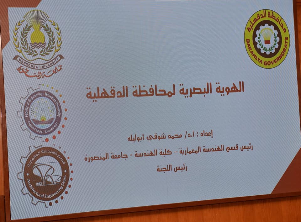 وتناول اللقاء المقترح الذي اعده الدكتور محمود شوقي ابو ليله رئيس اللجنة، رئيس قسم الهندسة المعمارية بكلية الهندسة جامعة المنصورة رئيس لجنة الهوية البصرية للمحافظة، والذي اوضح اننا نسعي لوضع خطة عمل متكاملة لتنفيذ الهوية البصرية بكافة عناصرها التي حددتها خطة وزارة التنمية المحلية في هذا الشأن باعتبار هذا العمل واجباً ومسئولية وطنية بهدف ابراز مشروع الهوية البصرية بأفضل صورة بهدف ترسيخ مفاهيم الهوية ووضع هوية مصر البصرية لكل محافظاتها على الخريطة العالمية مما يساهم بقوة في الترويج السياحي لها..