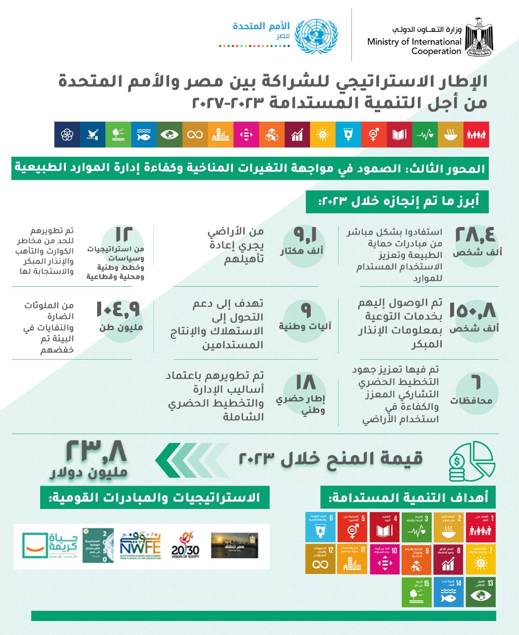 178 مليون دولار برامج تعاون إنمائي ومنح تنموية بين مصر والأمم المتحدة خلال 2023