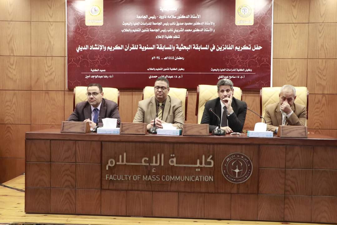 إعلام الأزهر تُكرِّم الفائزين في مسابقتي القرآن والإنشاد الديني والبحوث العلمية