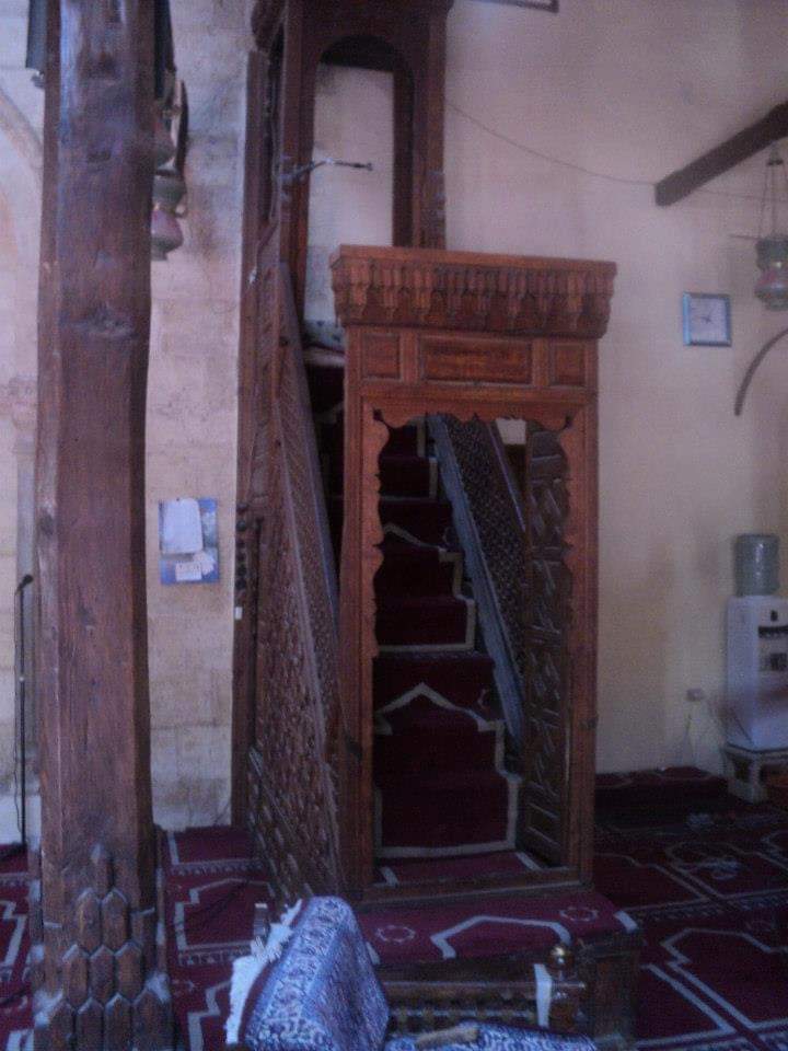 أما المحرابان الجانبيان فهما متشابهان فكل منهما عبارة عن حنية نصف دائرية خالية من الزخارف ويزخرف جدار القبلة من أعلى نوافذ وشبابيك من الجص المفرغ والمعشق بالزجاج الملون وللمسجد دكة مصنوعة من خشب الخرط تقع بالمربع الأوسط من البلاطة المطلة على الصحن أما الرواق الشمالى المقابل لرواق القبلة فيتكون من بلاطتين موازيتين لجدار القبلة ويتوسط جدار هذا الرواق فتحة الباب الشمالى كما يشتمل أيضًا على صفين من النوافذ.