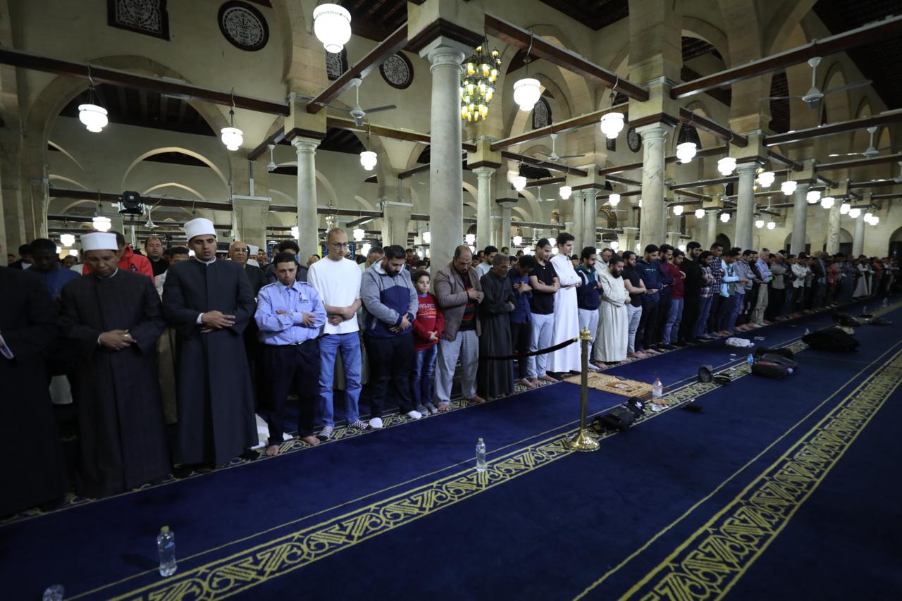 من شتى بقاع الأرض.. الآلاف يؤدون صلاتي العشاء والتراويح بالجامع الأزهر