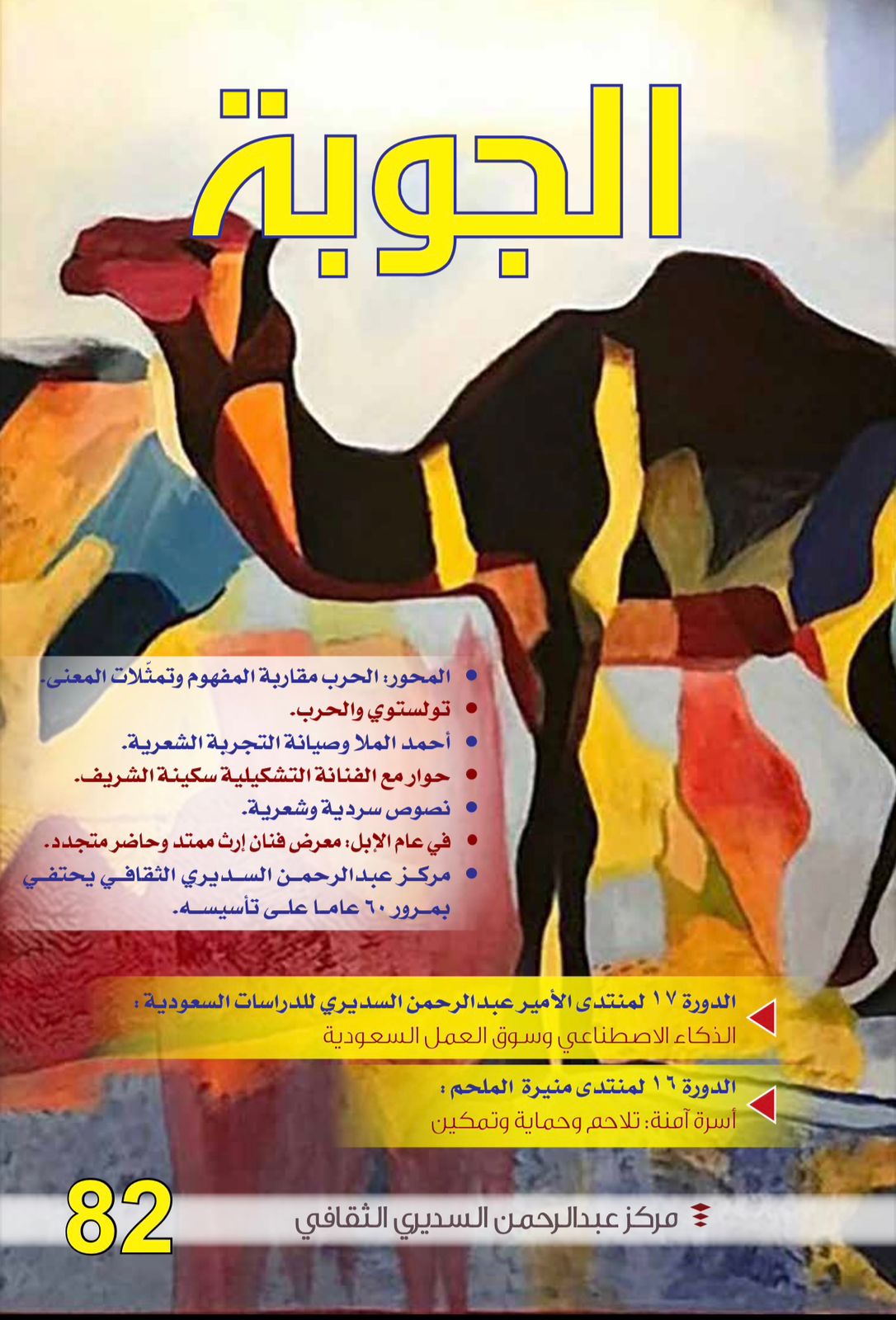 صدر حديثاً عن مركز عبدالرحمن السديري الثقافي العدد 82 من مجلة الجوبة الثقافية والذى تضمن الدورة 17 لمنتدى الأمير عبدالرحمن السديري للدراسات السعودية : الذكاء الاصطناعي وسوق العمل السعودية و الدورة 16 لمنتدى منيرة الملحم للدراسات السعودية آسرة آمنة.