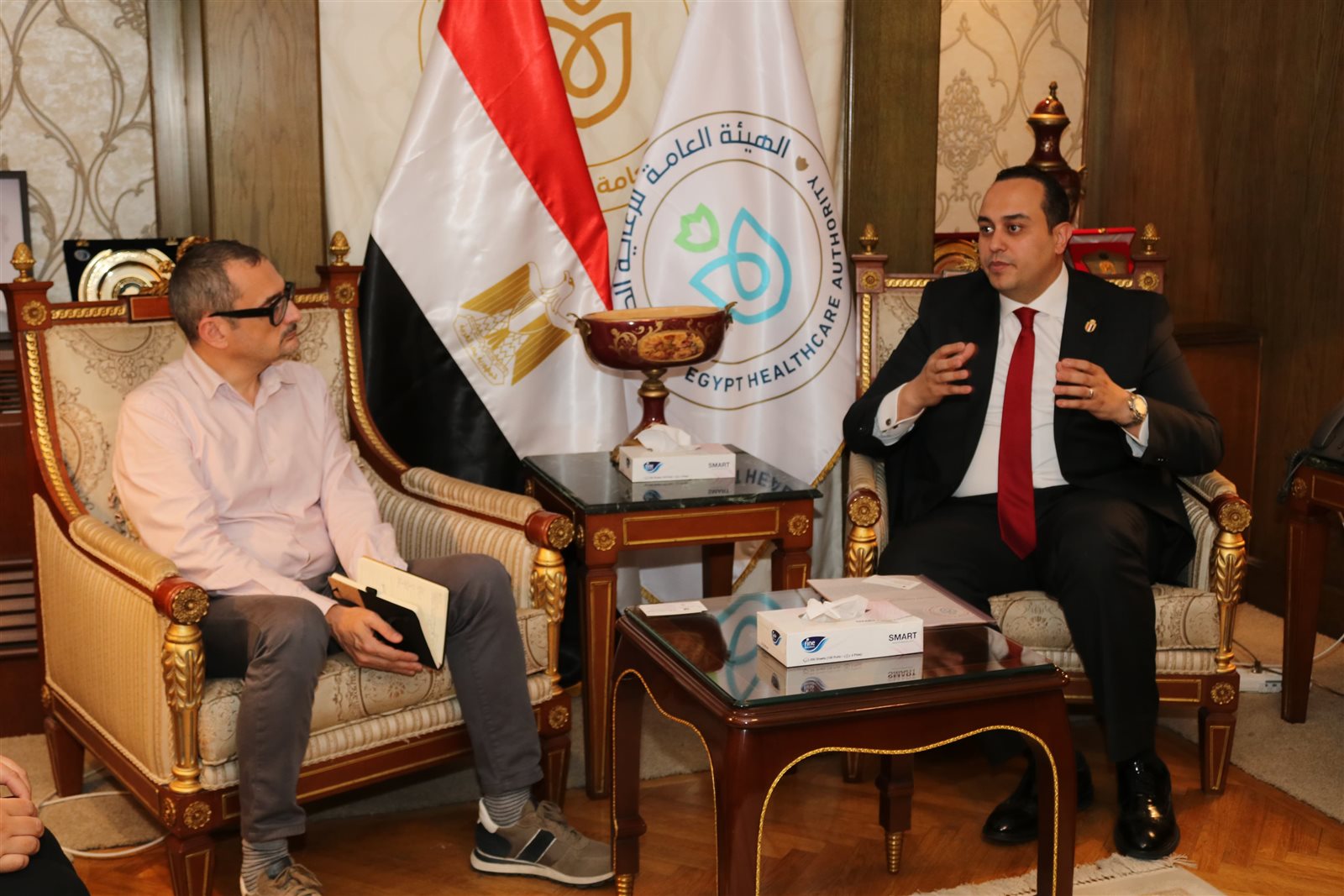 وبحث اللقاء، أيضًا التعاون بين الجانبين لإبرام تعاقد لإحالة المرضى السودانيين لتلقي الخدمات الطبية والعلاجية عالية المستوى بمستشفيات هيئة الرعاية الصحية في محافظات التأمين الشامل، وبخاصة في محافظة أسوان.