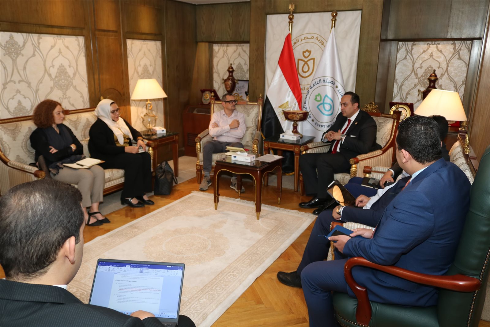 التقى الدكتور أحمد السبكي، رئيس الهيئة العامة للرعاية الصحية والمشرف العام على مشروعي التأمين الصحي الشامل وحياة كريمة بوزارة الصحة والسكان، مع السيد ماتيو كابروتي، المدير القُطري لهيئة إنقاذ الطفولة "Save The Children"، والدكتورة إنجي عفوش، رئيس قطاع تطوير البرامج والجودة بهيئة إنقاذ الطفولة، والدكتورة رباب بينيس، استشاري الصحة بالهيئة، وذلك في المقر الرئيسي لهيئة الرعاية الصحية في القاهرة.