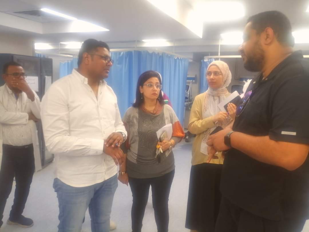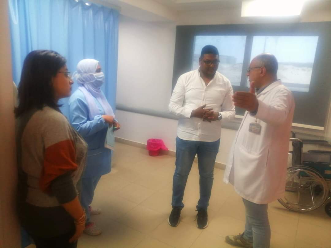 يرافقه دكتورة رشا عادل مدير عام الطب العلاجي ودكتور محمد عبد الحافظ مدير مستشفى الحميات