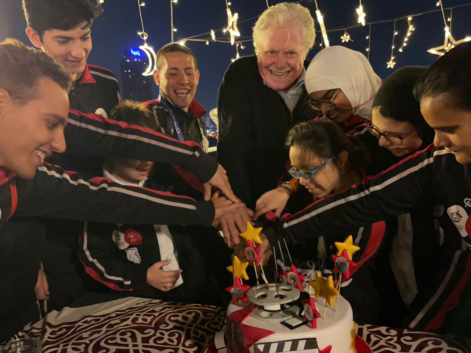 أحتفل لاعبو الأولمبياد الخاص المصري بعيد ميلاد الفنان الكبير حسين فهمي سفير الأولمبياد الخاص الدولي على هامش حفل الافطار الجماعي الذي نظمته الرئاسة الاقليمية للأولمبياد الخاص الدولي لمنطقة الشرق الأوسط وشمال أفريقيا بنادي النيل في بالقاهرة.