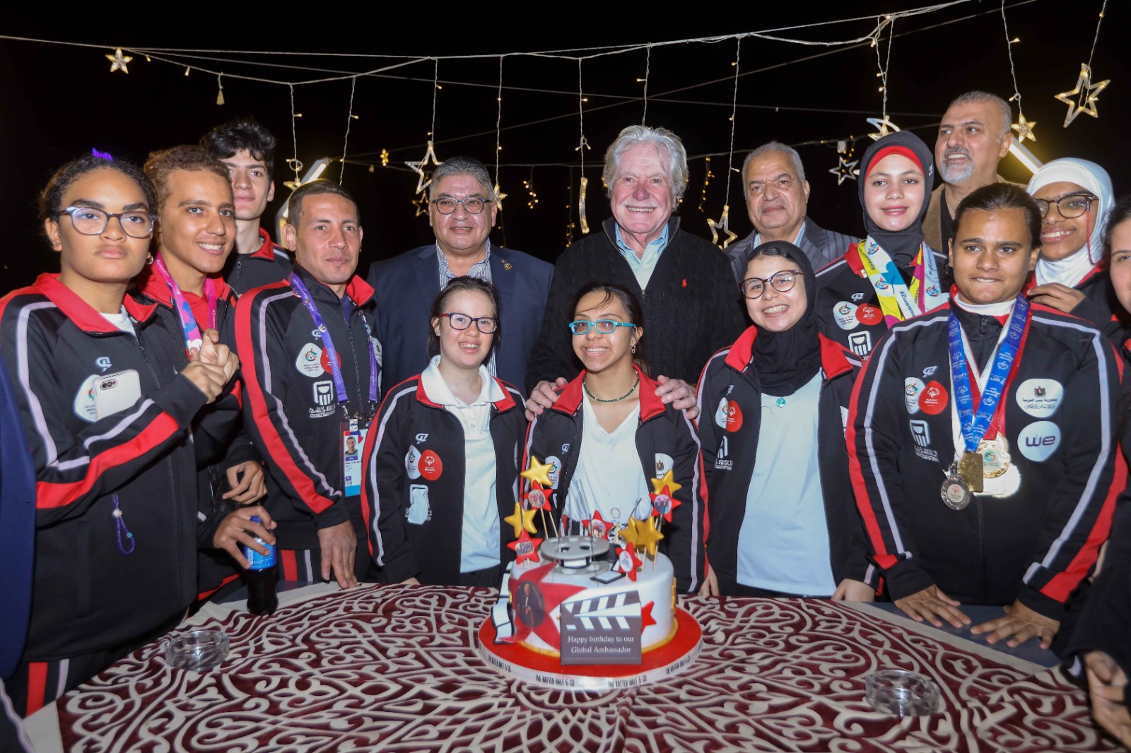 بالصور.. لاعبو الأولمبياد الخاص يحتفلون بعيد ميلاد سفيرهم الدولي الفنان حسين فهمي