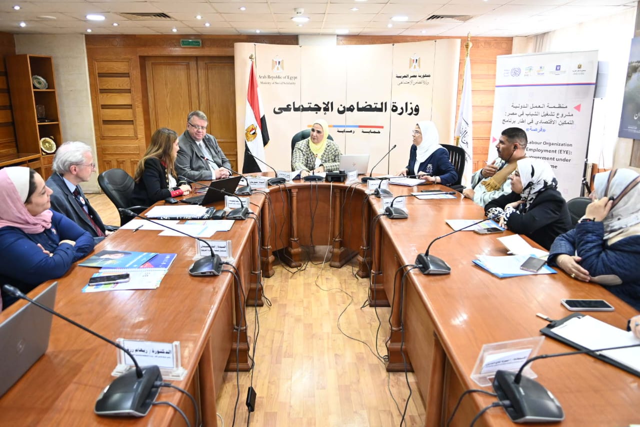 ترأست نيفين القباج، وزيرة التضامن الاجتماعي، اجتماع اللجنة الاستشارية لمشروع منظمة العمل الدولية "تشغيل شباب أسر تكافل وكرامة في إطار برنامج فرصة"، وذلك بحضور الدكتورة مرفت صابرين، مساعد وزيرة التضامن الاجتماعي لشبكات الحماية الاجتماعية، واريلد اوكسنفاد رئيس قطاع التنمية بسفارة النرويج، والسيد إيريك أوشلان مدير مكتب منظمة العمل الدولية بالقاهرة، والسيدة نشوى بلال مدير مشروع EYE FORSA وفريق العمل من المنظمة وممثلى وزارات العمل والتعاون الدولي والشباب والرياضة والتخطيط واتحاد الصناعات المصرية وفريق عمل برنامج فرصة وعدد من قيادات العمل بالوزارة فى مجال التمكين الاقتصادي.